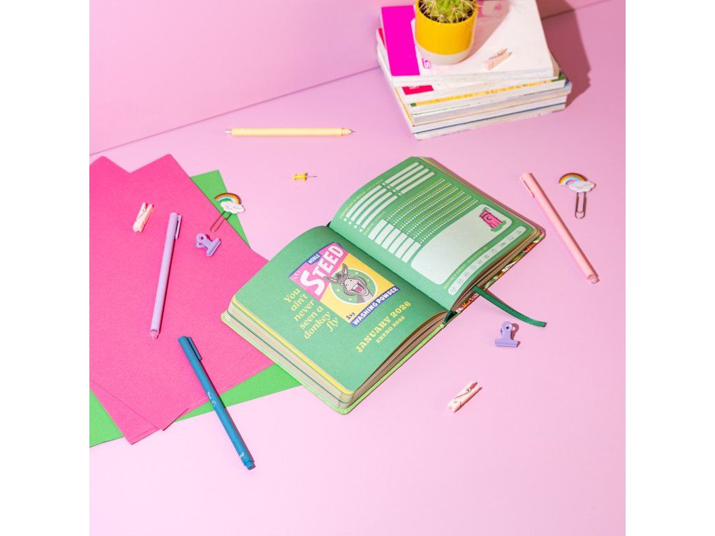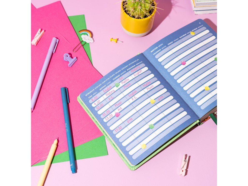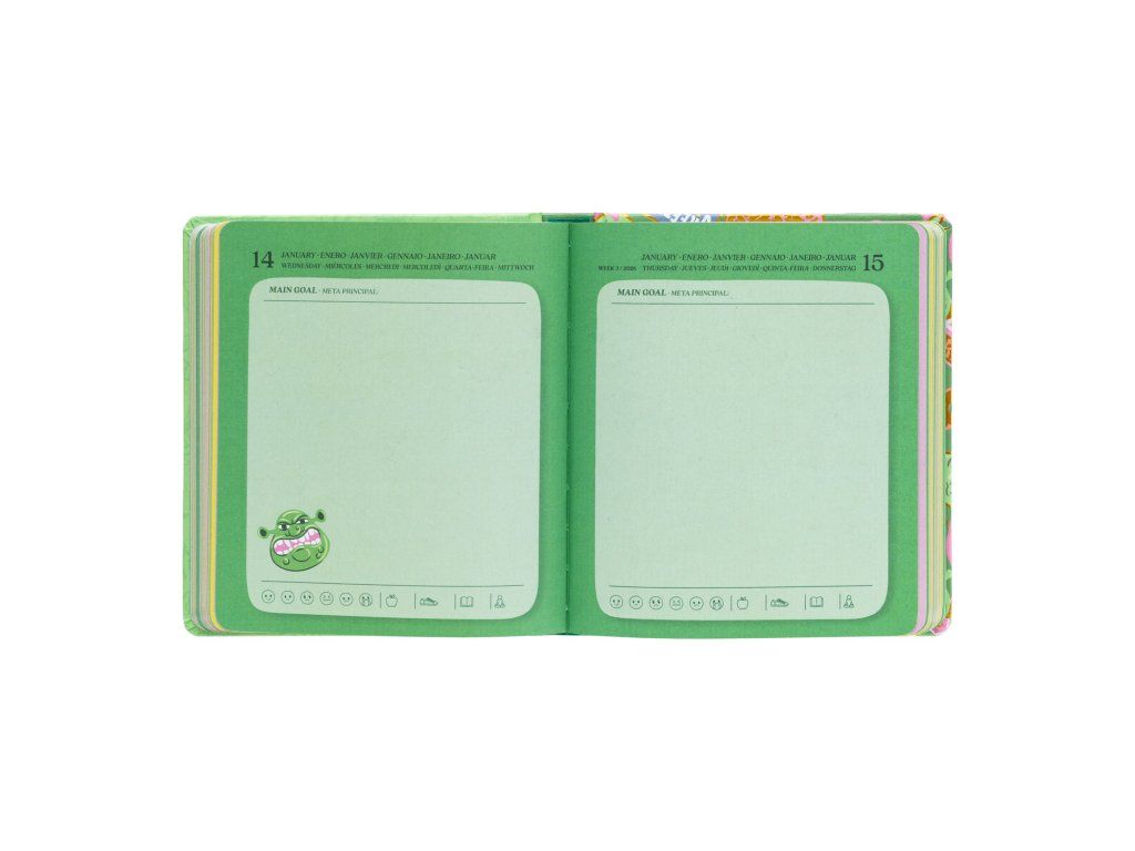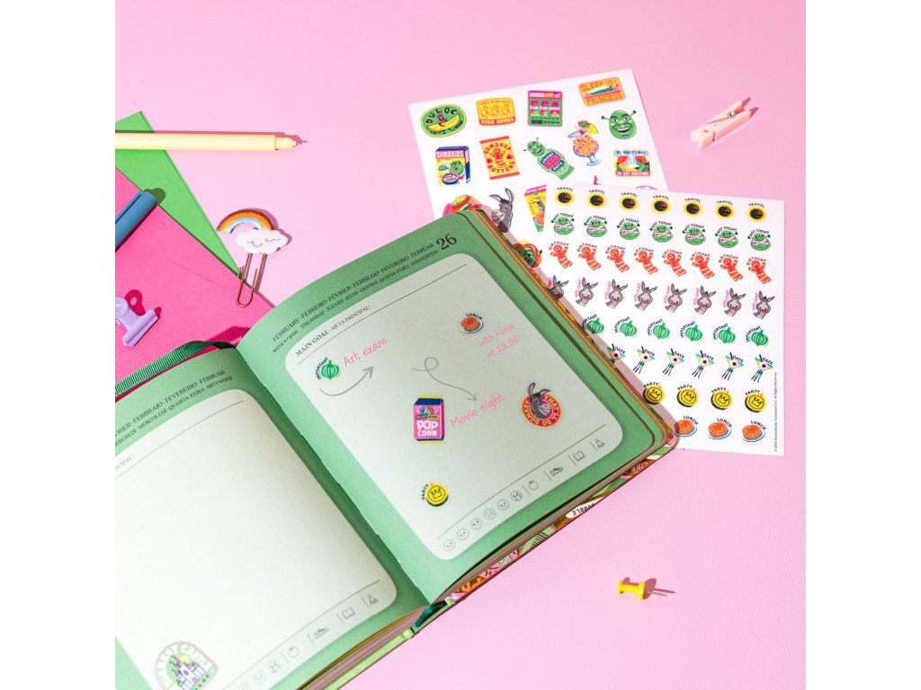 Diář pro školní rok 2025/2025 od srpna do června s motivy Shreka. Součástí je 1 záložka se stuhou, 2 stránky se samolepkami a vnitřní kapsa.Doplňkové parametry