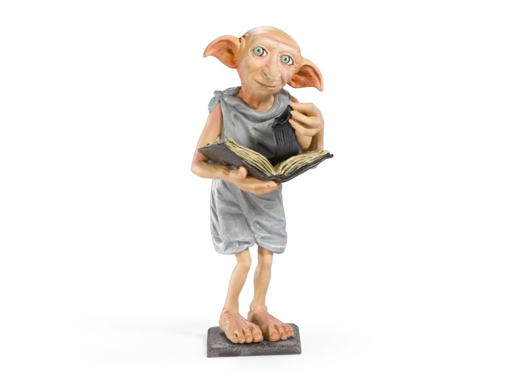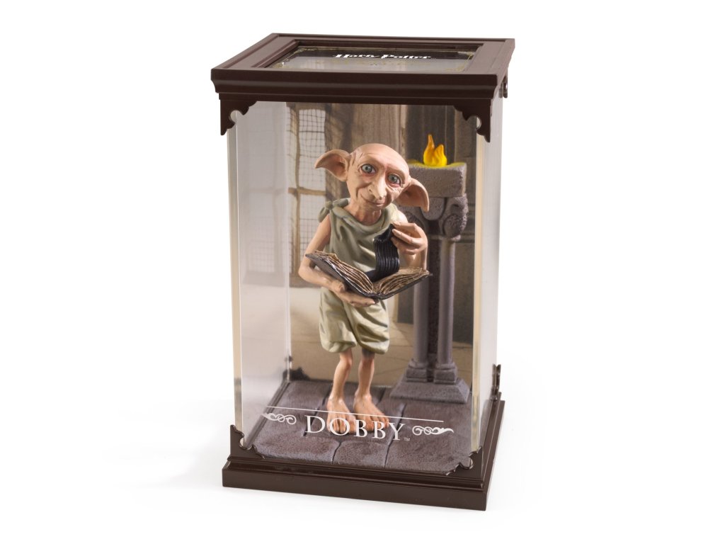 Sběratelská figurka v průhledné vitríně - skřítek Dobby. Věrný přítel a pomocník Harryho Pottera, díky němuž se stal svobodným a odprostil se od rodiny Malfoyů, kde do té doby sloužil.