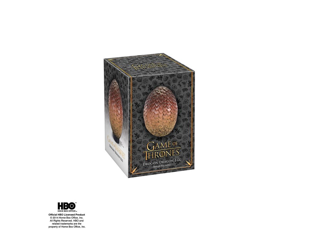Přesná replika vejce, ze kterého se vylíhl Drogon, je vyrobena z pryskyřice, ručně malovaná a dodávána s vystavovacím stojanem. Aby se z dračích vajec vylíhla mláďata, musí být spálena v plamenech, při nichž je obětován jiný život. Výška repliky je přibližně 20 cm.Doplňkové parametry