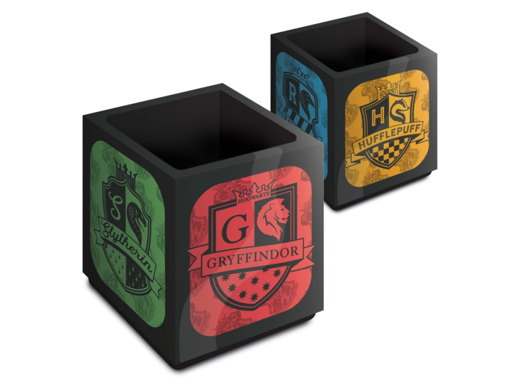 Udělejte si pořádek ve svých psacích potřebách s tímto elegantním držákem na tužky s motivem Harryho Pottera. Každá ze čtyř stran nese výrazný barevný erb jedné z kolejí Školy čar a kouzel v Bradavicích: Nebelvír, Mrzimor, Havraspár a Zmijozel.Doplňkové parametry