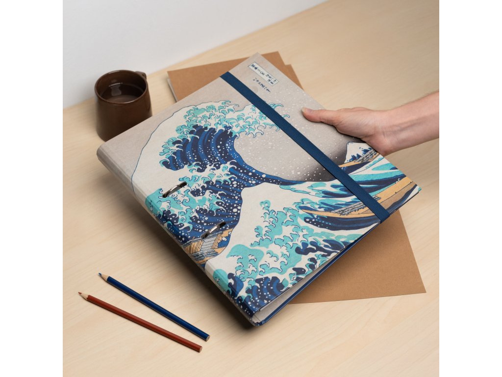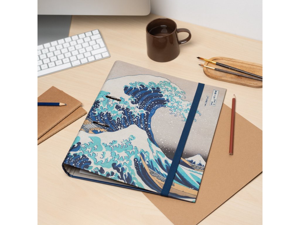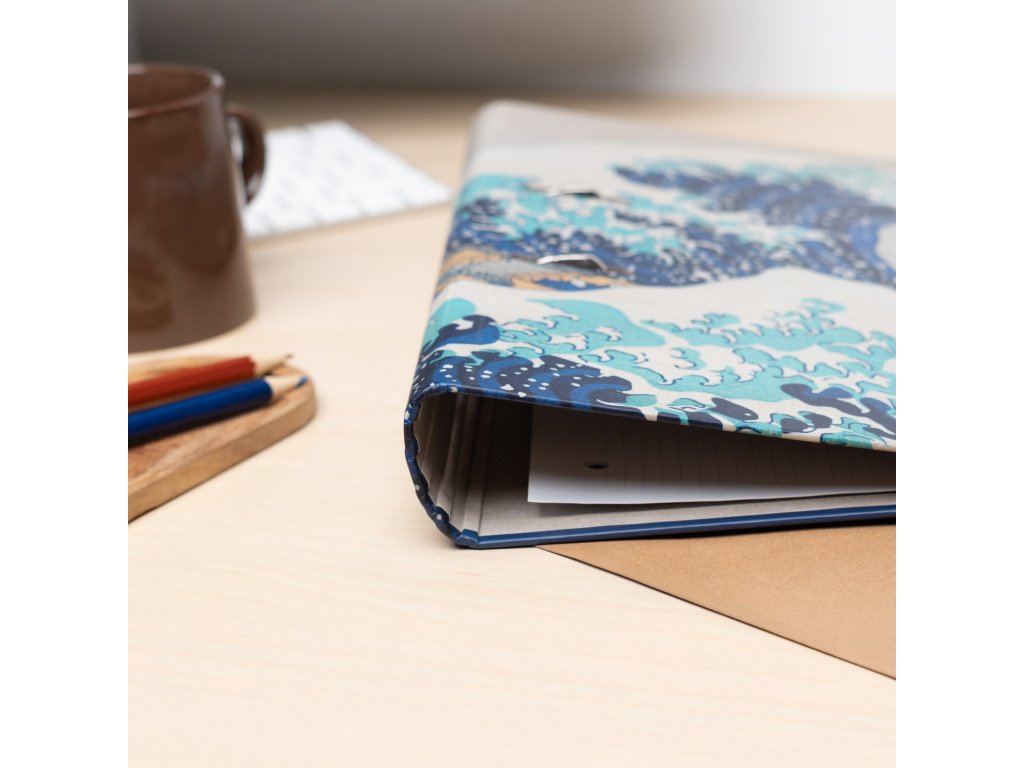 Dvoukroužkový pořadač A4 modrý, Velká vlna Kanagawy, Hokusai