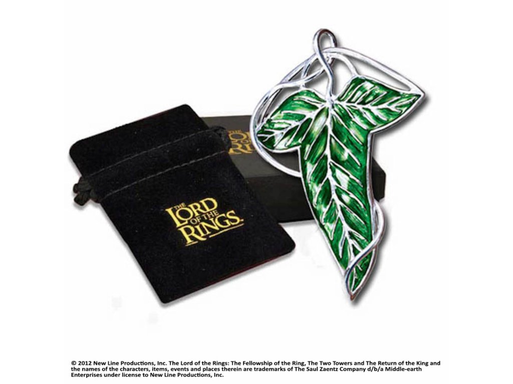 Kostýmová replika elfí brože, kterou obdrželi členové Společenstva prstenu v Lothlórienu, inspirovaná filmovou trilogií Pán prstenů. Brož je zdobena bohatým zeleným smaltem a věrně zachycuje tvar i barvu původního filmového designu.