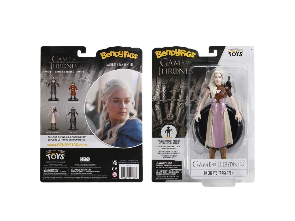 Tato autentická, propracovaná ohebná figurka Daenerys je dodávána s odnímatelným stojanem pro vystavení a měří přibližně 18 cm na výšku. Tato matka draků Daenerys je dodávána s malým dráčkem na rameni. Figurky Bendyfigs™ jsou zábavné pro děti a detailní sběratelský kousek pro fanoušky všech věkových kategorií. Doporučený věk 7+.Doplňkové parametry