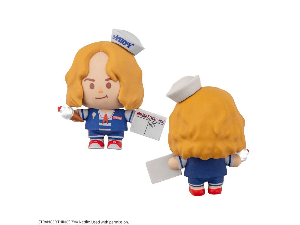 Gomee je sbírka gumových figurek k sestavení a sbírání. Každá postavička z kolekce Stranger Things Gomee se musí sestavit a má své vlastní příslušenství, které lze přidávat a vyměňovat. Jsou vyrobeny z gumy a skutečně fungují jako guma! Tato Robin Scoops Ahoy Gomee zachycuje její svérázný šarm a ikonickou retro uniformu Scoops Ahoy, díky níž je okamžitě rozpoznatelná. Je známá svým důvtipem, inteligencí a loajalitou a mezi fanoušky seriálu Stranger Things se rychle stala oblíbenou. Spolu s doplňky, jako je její tabule "vládneš, jsi na hovno", si ji můžeš hrdě vystavit spolu se svou rostoucí sbírkou Gomee!