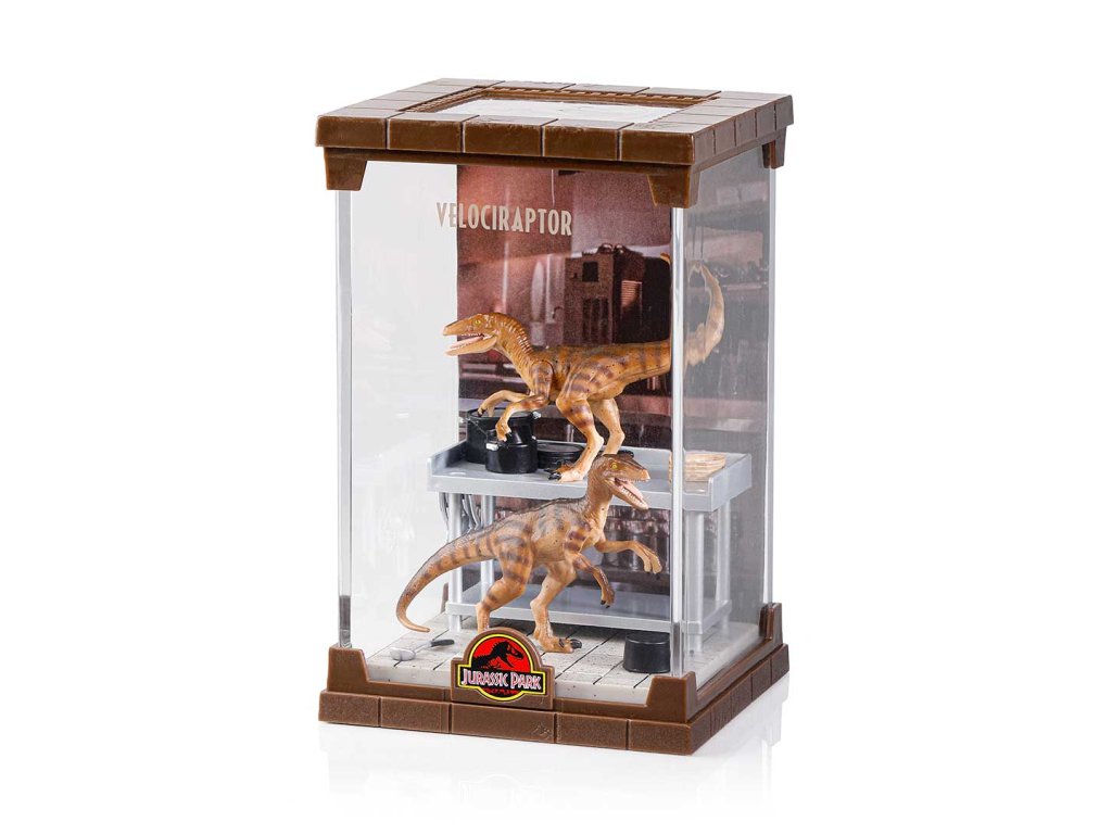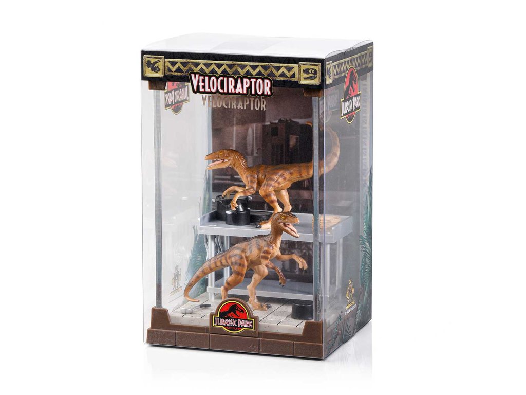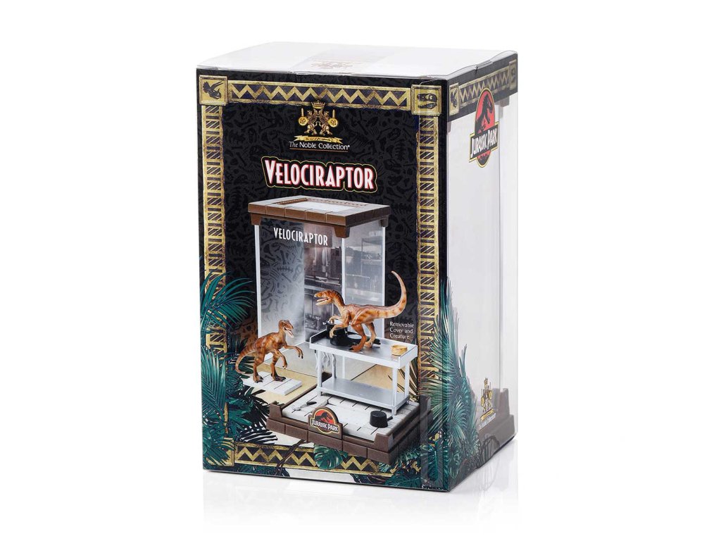 Impozantní Velociraptor z Jurského parku ožívá v tomto precizně zpracovaném diorámatu. Pouzdro lze odejmout a dinosaurus je také odnímatelný ze základny. Dioráma měří přibližně 18 cm na výšku. Sesbírejte všechny 3 dinosaury – Tyrannosaura Rexe, Velociraptora a Dilophosaura!Doplňkové parametry