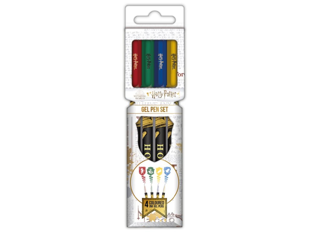 Set 4 ks gelových per s motivy kolejí bradavické školy čar a kouzel.