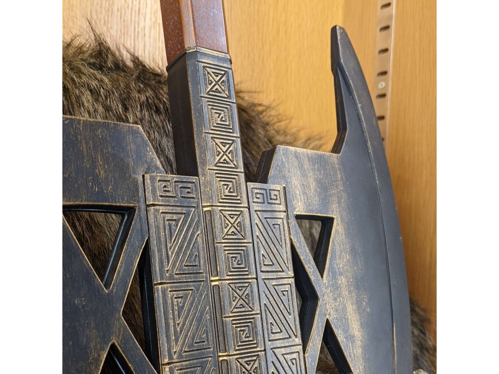 Připojte se ke Společenstvu prstenu s touto detailní replikou sekery trpaslíka Gimliho ze série Pán prstenů. Sekera vyniká charakteristickým dvojitým ostřím a precizním zpracováním, které věrně odráží vzhled filmové zbraně.