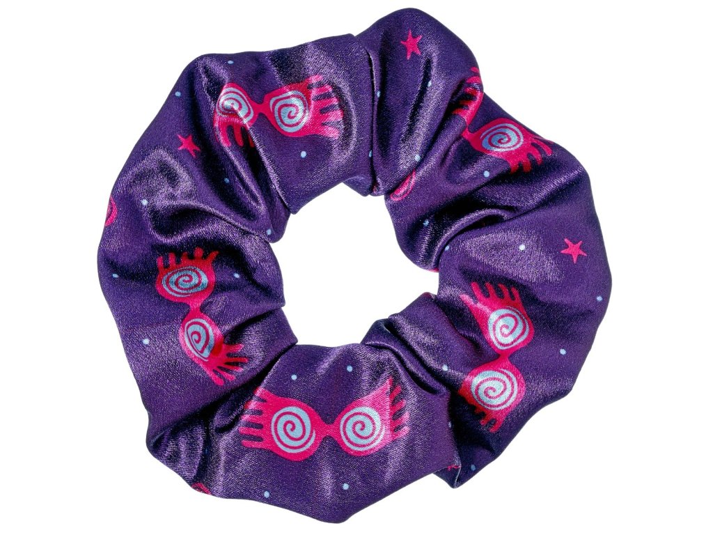 Dolaďte svůj culík touto kouzelnou scrunchie vyrobenou ze saténové látky s motivem brýlí Lenky Láskorádové.