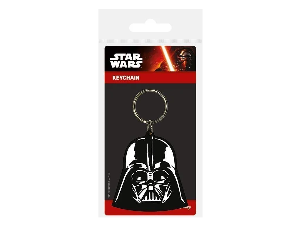 Gumový přívěsek na klíče se vzorem Darth Vadera z nejznámější série Star Wars neboli Hvězdné války.
