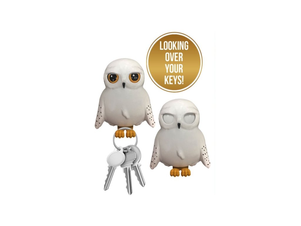 Originální háček na klíče ve tvaru sovy Hedviky. Sova reaguje na umístění klíčů, pokud klíče sejmete - uzavře oči.