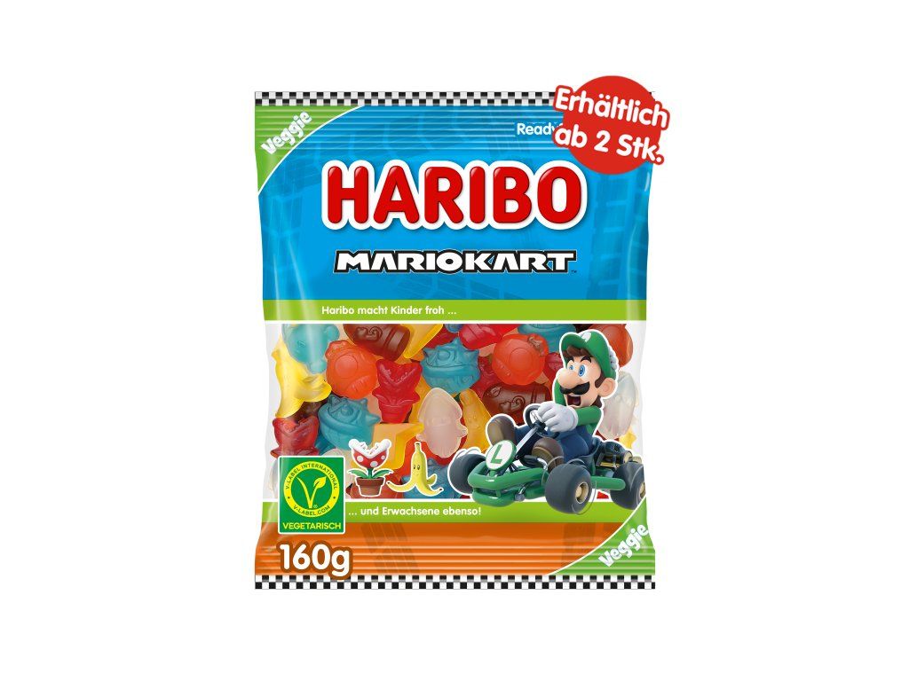 Haribo Super Mario Kart Veggie (160 g) Tato speciální edice Haribo přenáší ikonický svět Mario Kart přímo k vám domů. V balení najdete ovocné želé ve tvarech známých předmětů a postav ze hry.