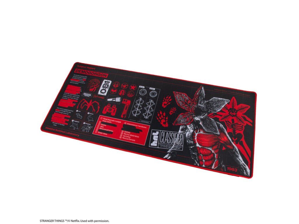 Temná stylová podložka s motivem Demogorgona přenese atmosféru Stranger Things přímo na Váš pracovní stůl. Detailní grafika inspirovaná tajnými záznamy z Hawkins dodá každé herní nebo pracovní sestavě výrazný charakter. Ideální volba pro fanoušky seriálu, kteří chtějí spojit praktičnost s ikonickým designem a lehce mrazivou atmosférou.Doplňkové parametry