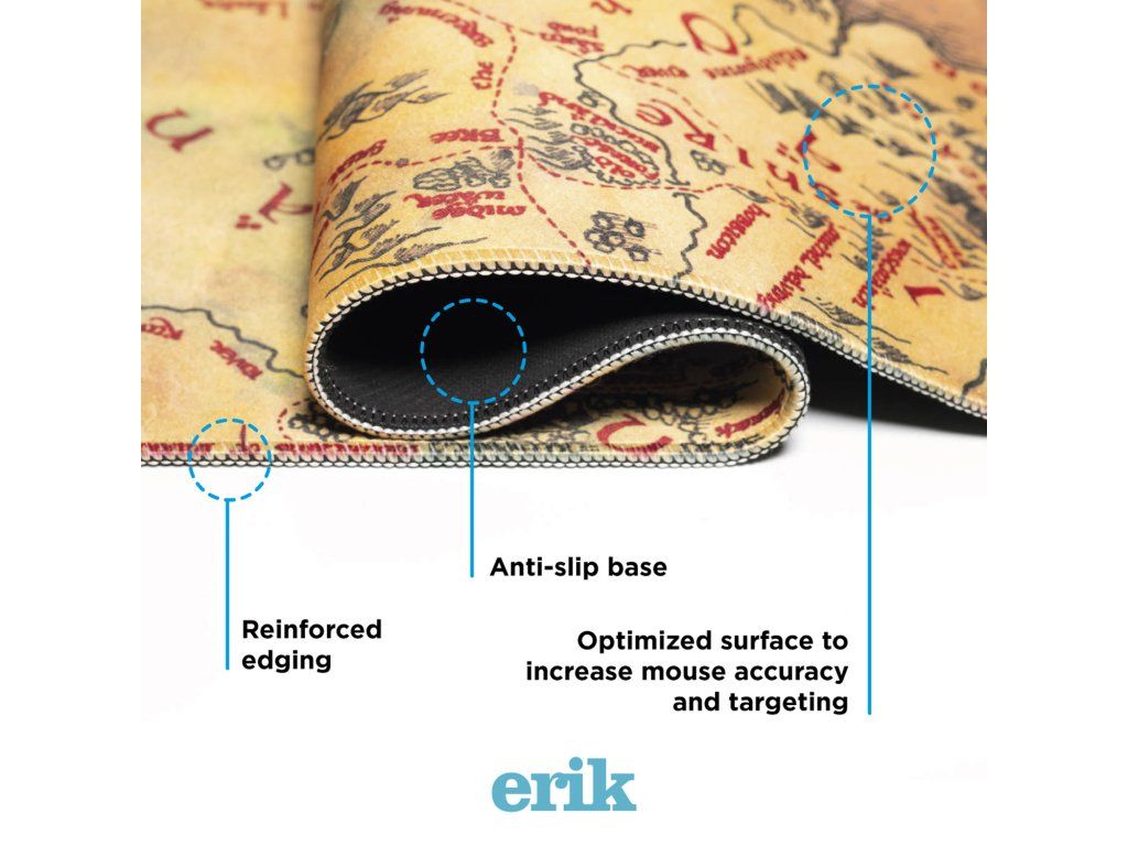 Vstupte do světa Středozemě pokaždé, když usednete k počítači. Tato kvalitní herní podložka pod myš zobrazuje detailní mapu legendárního světa z trilogie Pán prstenů, díky čemuž se stane nejen praktickým doplňkem, ale i stylovým prvkem vašeho pracovního nebo herního stolu.