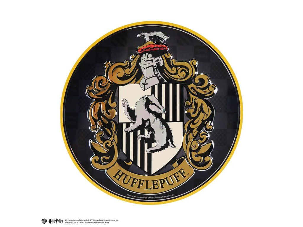 Stylová kulatá hliníková cedule s motivem jedné z kolejí ze světa Harry Potter je skvělým doplňkem pro fanoušky kouzelnického světa. Ať už jste odvážný Nebelvír, věrný Zmijozel, chytrý Havraspár nebo loajální Mrzimor, tato cedule vám připomene kouzlo Bradavic každý den. Perfektní jako dekorace na zeď, dveře, poličku nebo jako originální dárek pro fanoušky všech kolejí.Doplňkové parametry