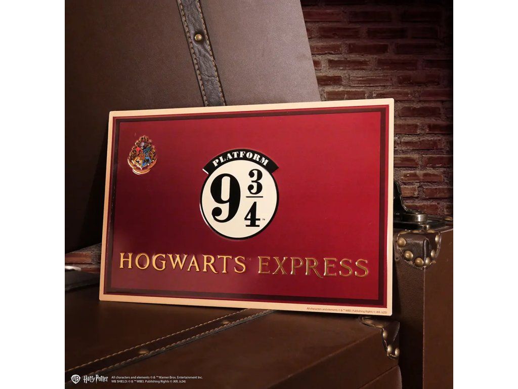 Stylová hliníková cedule s motivem Nástupiště 9 3/4 z kouzelnického světa Harry Potter přenese magickou atmosféru přímo k vám domů. Skvělý doplněk na zeď, dveře nebo do pracovny pro všechny fanoušky Harryho Pottera. Tato cedule je odolná, lehká a zároveň krásně vypadá jako dekorace nebo dárek. Připomene kouzlo odjezdu do Bradavic každý den.Doplňkové parametry