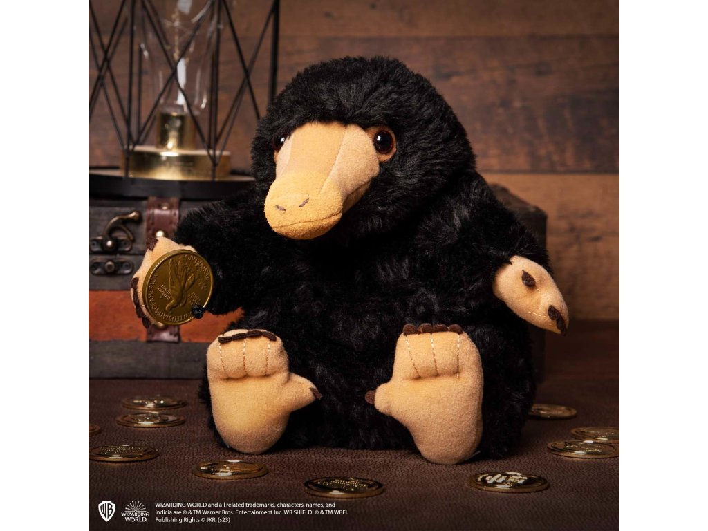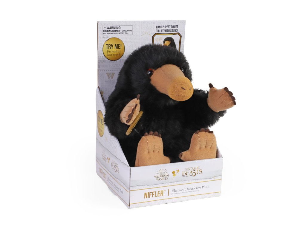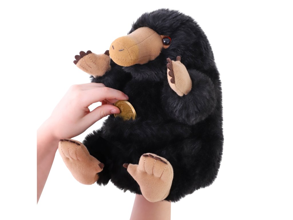 Rozkošný Hrabák z Fantastických zvířat tentokrát jako interaktivní plyšák – stačí pohladit tohoto rozkošného tvora po hlavě, aby začal vydávat charakteristické zvuky. V tlapce pak může držet minci, kterou má schovanou u sebe.