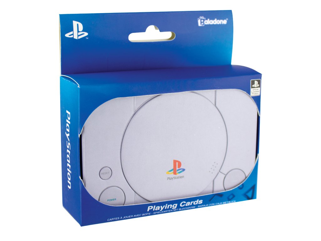 Sada originálních hracích karet se symboly PlayStation inspirované první generací herní konzole. Jsou dodávané v plechové krabičce, taktéž v jedinečném provedení a zcela jistě potěší každého fanouška této herní konzole. Karty jsou opatřeny symboly z tlačítek ovladače a logem Playstation.Doplňkové parametry