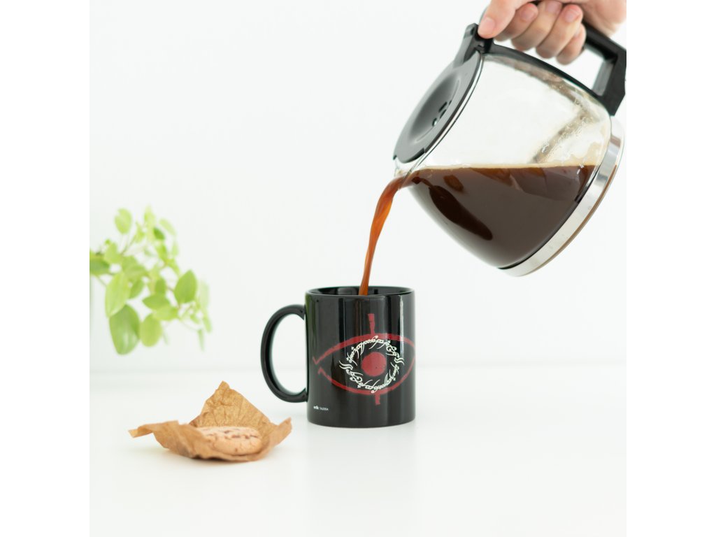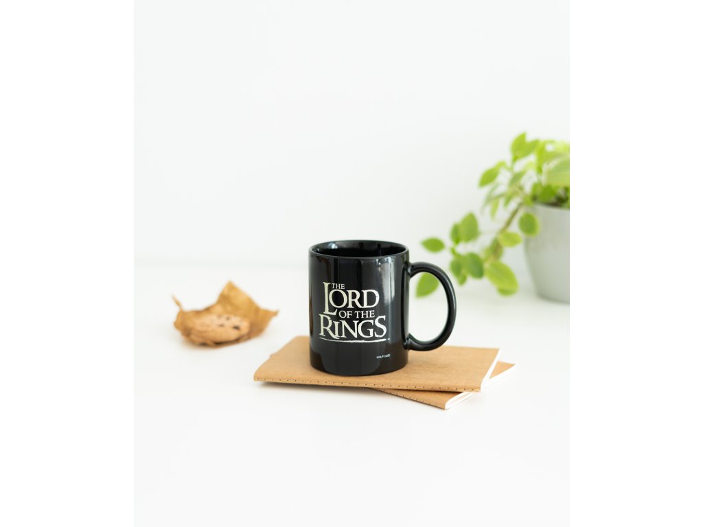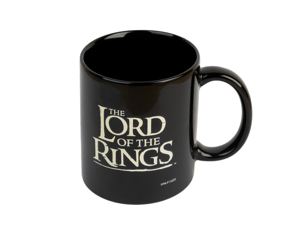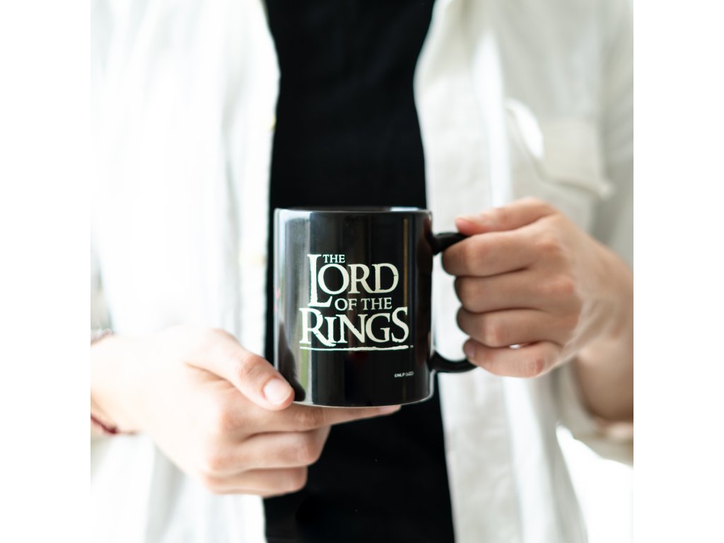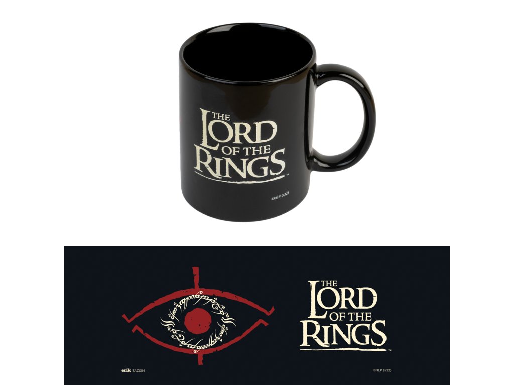 Stylový černý keramický hrnek inspirovaný světem Pána prstenů potěší každého fanouška Středozemě. Na jeho povrchu je vyobrazeno logo „The Lord of the Rings“ doplněné o ikonické Sauronovo oko, které dodává hrnku výrazný a temně elegantní vzhled.