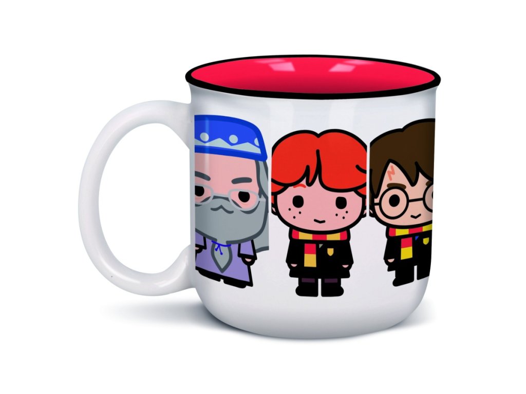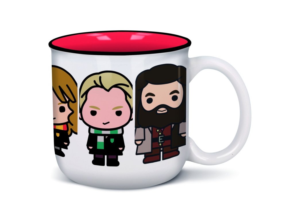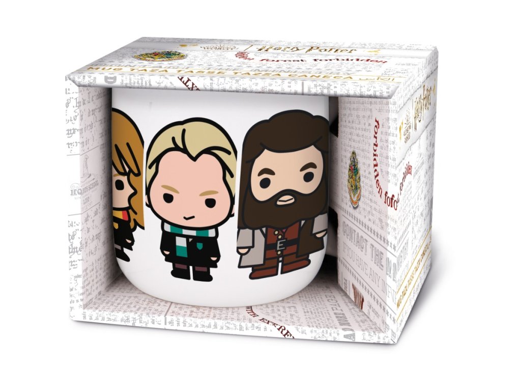 Keramický hrnek v dárkové krabičce, na kterém jsou znázorněny chibi postavičky z Harryho Pottera. A to konkrétně Albus Brumbál, Rubeus Hagrid, Draco Malfoy, Ron Weasley a samozřejmě nemůže chybět samotný Harry.