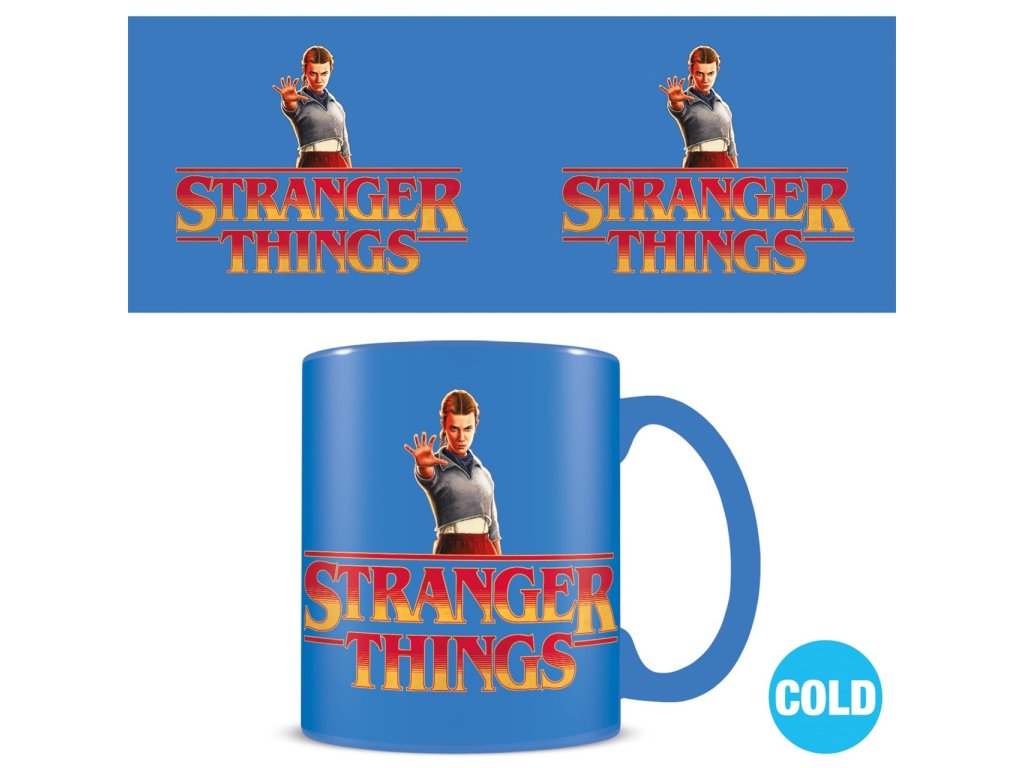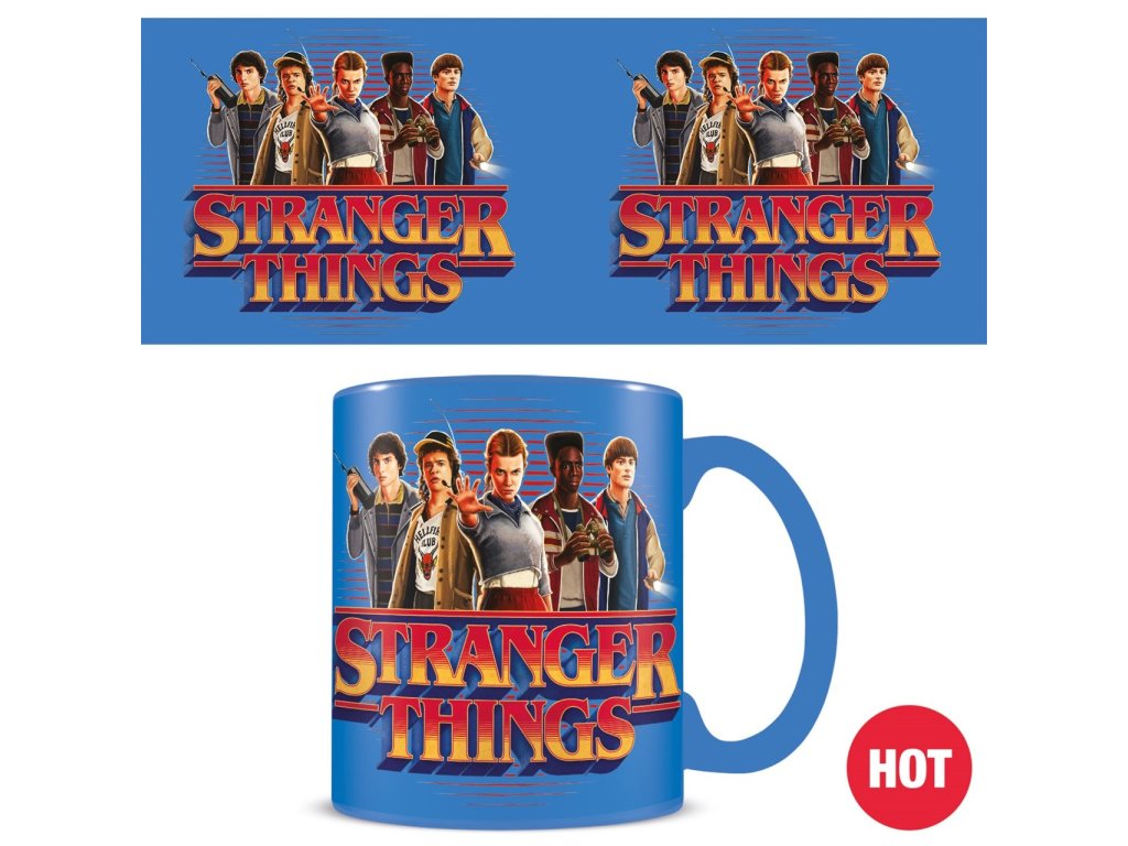 Keramický hrnek s měnícím se motivem – obrázek se objeví po nalití horkého nápoje. V chladném stavu ukazuje Eleven, ale jakmile nalijete horký nápoj, objeví se i zbytek party z Hawkinsu. Ideální pro fanoušky Stranger Things.