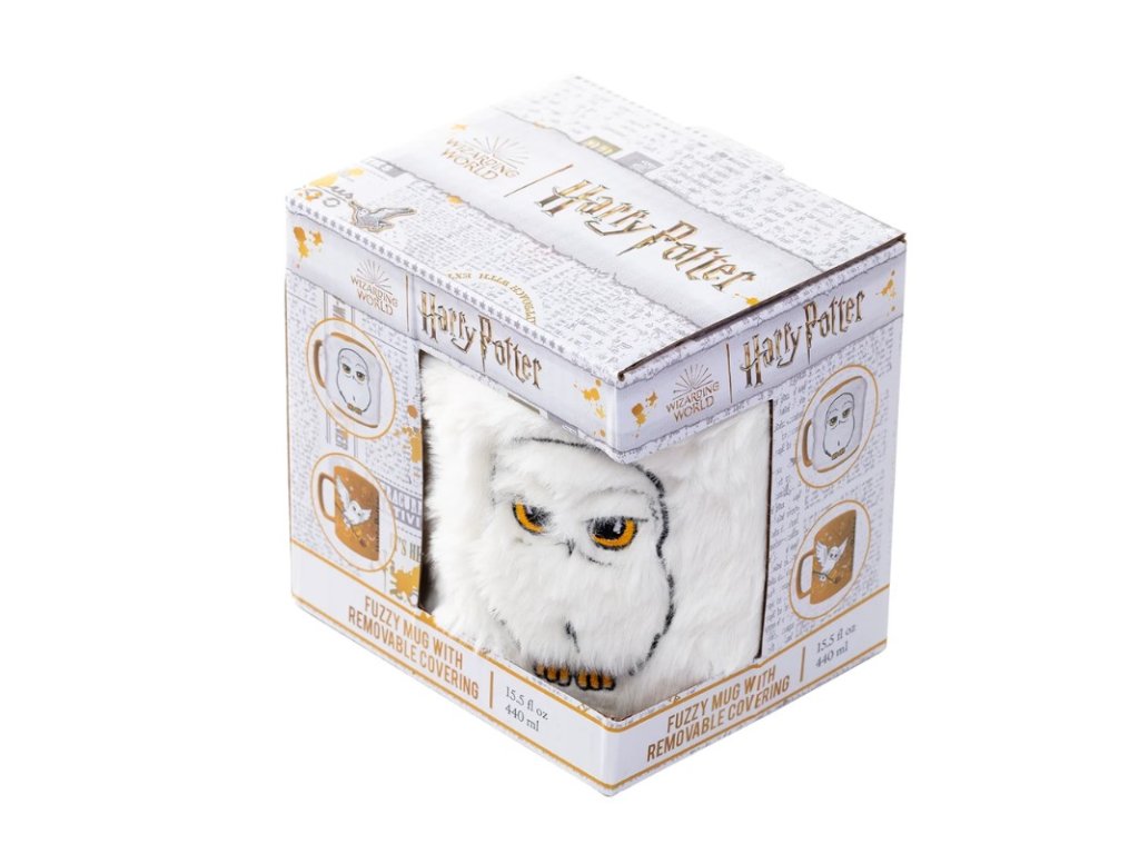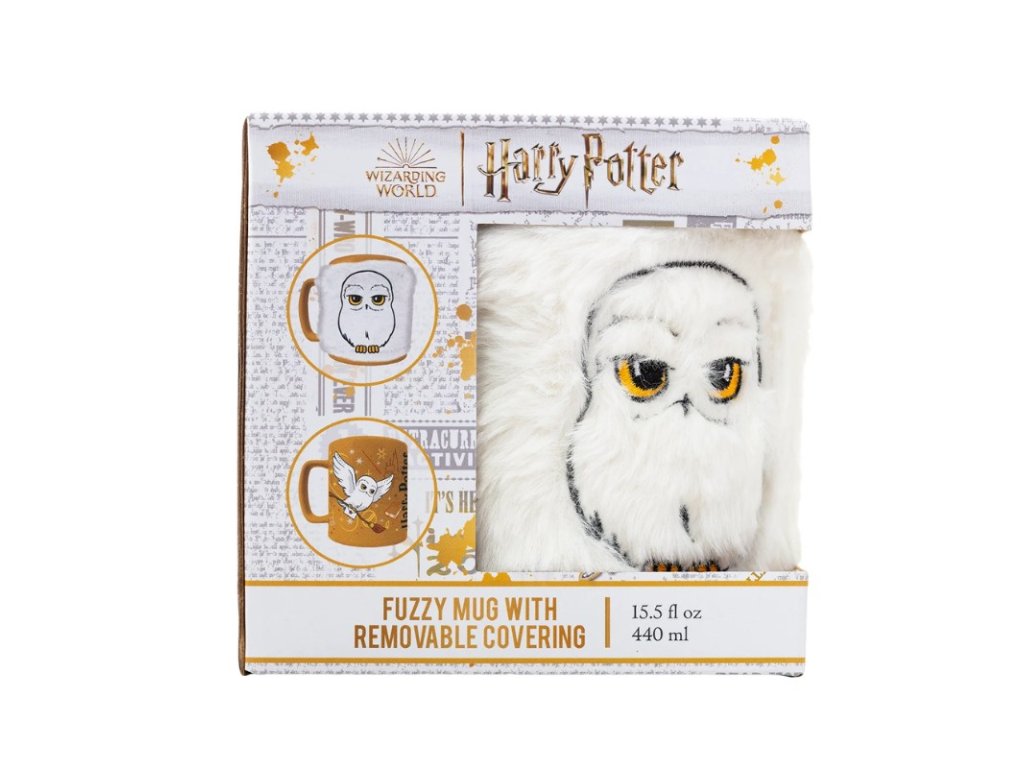 Jestli jste hledali netradiční keramický hrnek na popíjení čaje nebo jiných nápojů, pak jste narazili na správný kousek. Tento kouzelný hrnek, který je stylizován do designu světa Harryho Pottera, totiž obsahuje i bílý chlupatý návlek, symbolizující populární sovu Hedviku. Návlek lze sundat, není pevnou součástí hrnku.