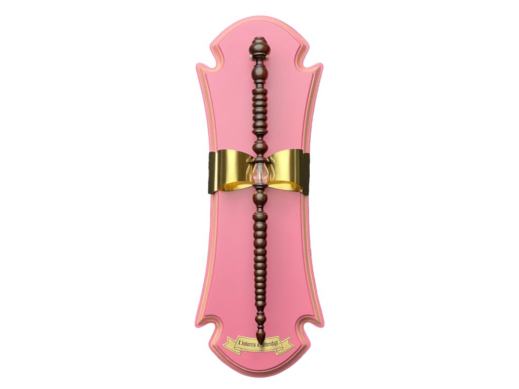 Autentická ručně malovaná replika kouzelnické hůlky první náměstkyně ministra kouzel Dolores Umbridgeové, která v Bradavicích zastávala profesorku Obrany proti černé magii. Součástí je i dřevěná nástěnná plaketa. Samozřejmě v růžové barvě.