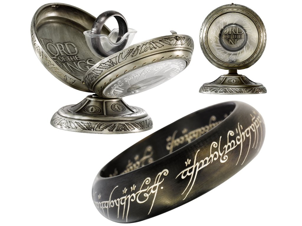 Tento oficiálně licencovaný prsten, vyrobený z eloxované nerezové oceli, je věrnou replikou ikonického Jednoho prstenu z filmové trilogie Pán prstenů. Prsten je designován v elegantním černém odstínu a každý kus je opatřen laserovým gravírováním slavného verše v černé řeči Tengwar, které zní:„Jeden prsten vládne všem, jeden jim všem káže, jeden všechny přivede, do temnoty sváže.“