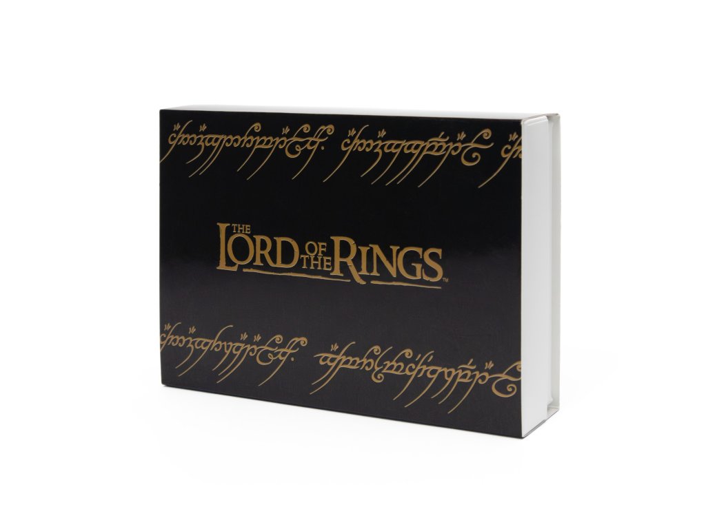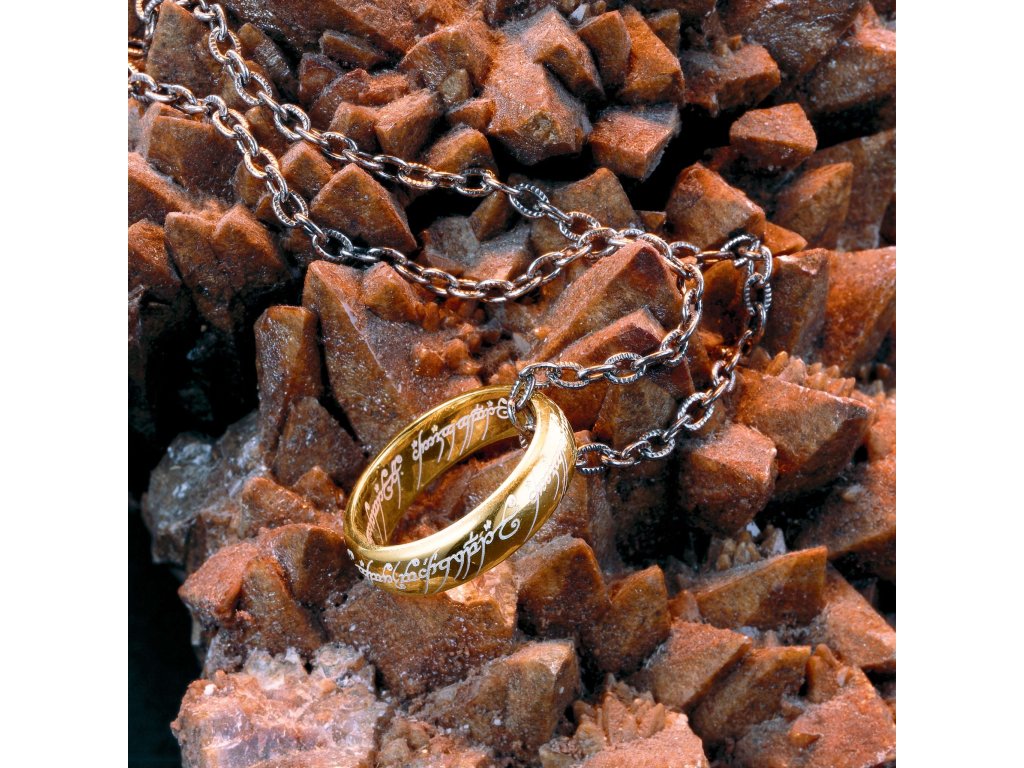 Tento exkluzivní Jeden prsten představuje luxusní pozlacenou repliku ze sterlingového stříbra, inspirovanou ikonickým šperkem z trilogie Pán prstenů. Na jeho povrchu je precizně vyryt verš v černé řeči Mordoru, vytvořený laserovou technologií, která zachycuje i ty nejjemnější detaily původního nápisu.
