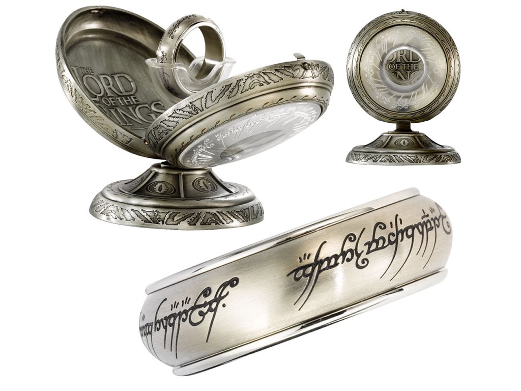 Tento oficiálně licencovaný prsten s kontrastním rotujícím vnějším kroužkem, vyrobený z eloxované nerezové oceli, je věrnou replikou ikonického Jednoho prstenu z filmové trilogie Pán prstenů. Prsten je designován v elegantním stříbrném odstínu a každý kus je opatřen laserovým gravírováním slavného verše v černé řeči Tengwar, které zní:„Jeden prsten vládne všem, jeden jim všem káže, jeden všechny přivede, do temnoty sváže.“