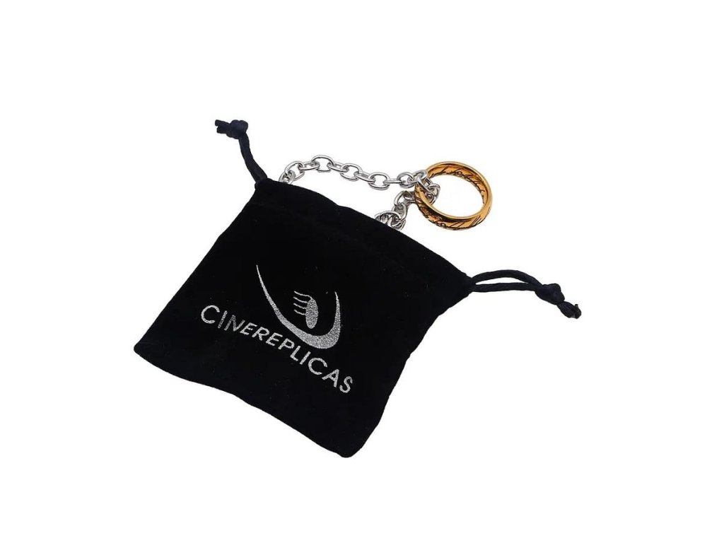 Součástí je řetízek o délce 60 cm, který umožňuje nosit prsten jako stylový šperk nebo jej vystavit jako sběratelský kousek. Celé balení je doplněno o dárkovou krabičku a látkový váček pro bezpečné uložení tohoto ikonického artefaktu.
