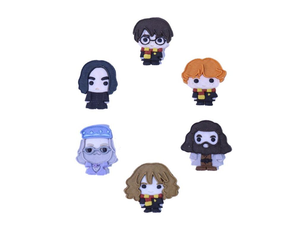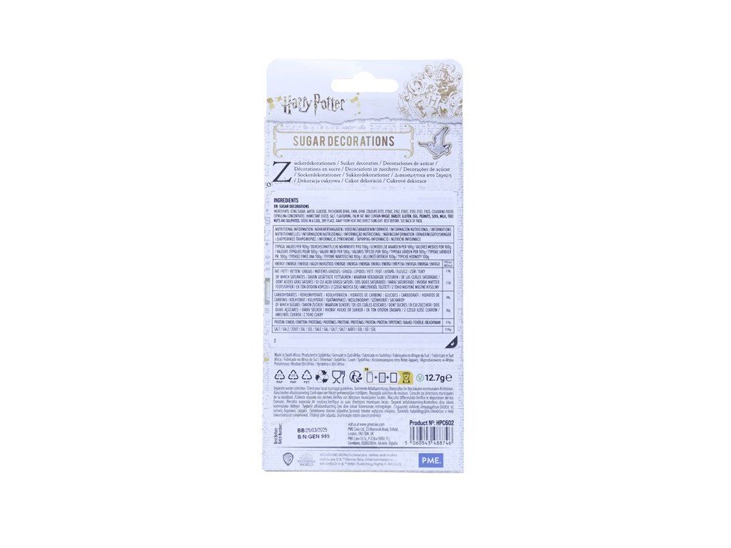 Dodejte svým koláčům nádech kouzelnictví s těmito jedlými ozdobami s motivy Harryho, Rona, Hermiony, Snapea, Brumbála a Hagrida. Sada obsahuje 6 ozdob vyrobených z jedlé gumpasty. Vysoce kvalitní, unikátní ručně vyráběné cukrové dekorace. Perfektní sada pro kreativní rodinnou zábavu s malými fanoušky Harryho Pottera. Snadné použití, jednoduše je nalepte přímo na muffiny, dorty nebo jakoukoli sladkou pochoutku dle vašeho výběru! Složení: moučkový cukr, voda, glukóza, zahušťovadla (E466, E406, E414), barviva (E172, E150c, E162, E160c, E100, E133, E163), potravinářské barvivo (koncentrát spiruliny), zvlhčovadlo (E422), sůl, aroma, palmový tuk.Doplňkové parametry