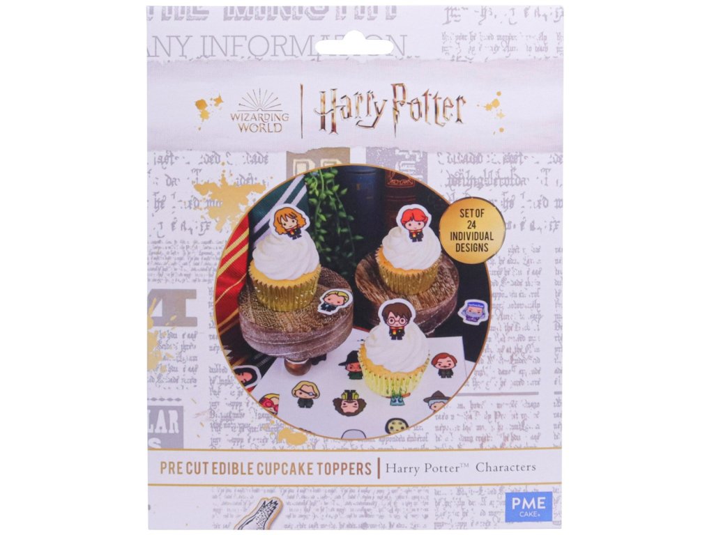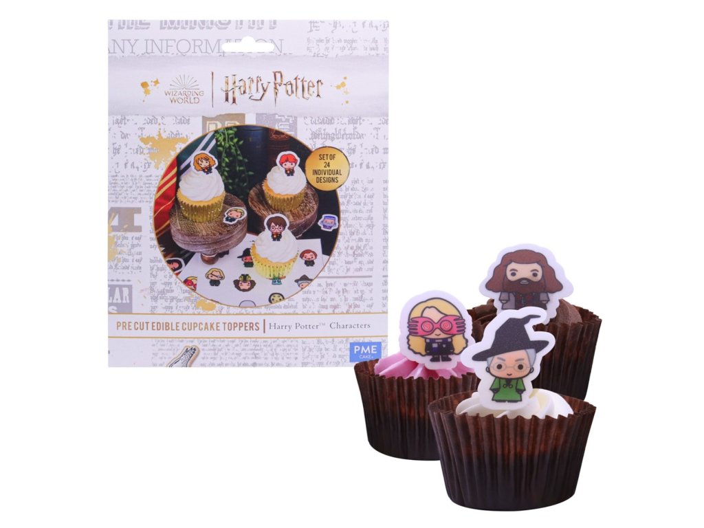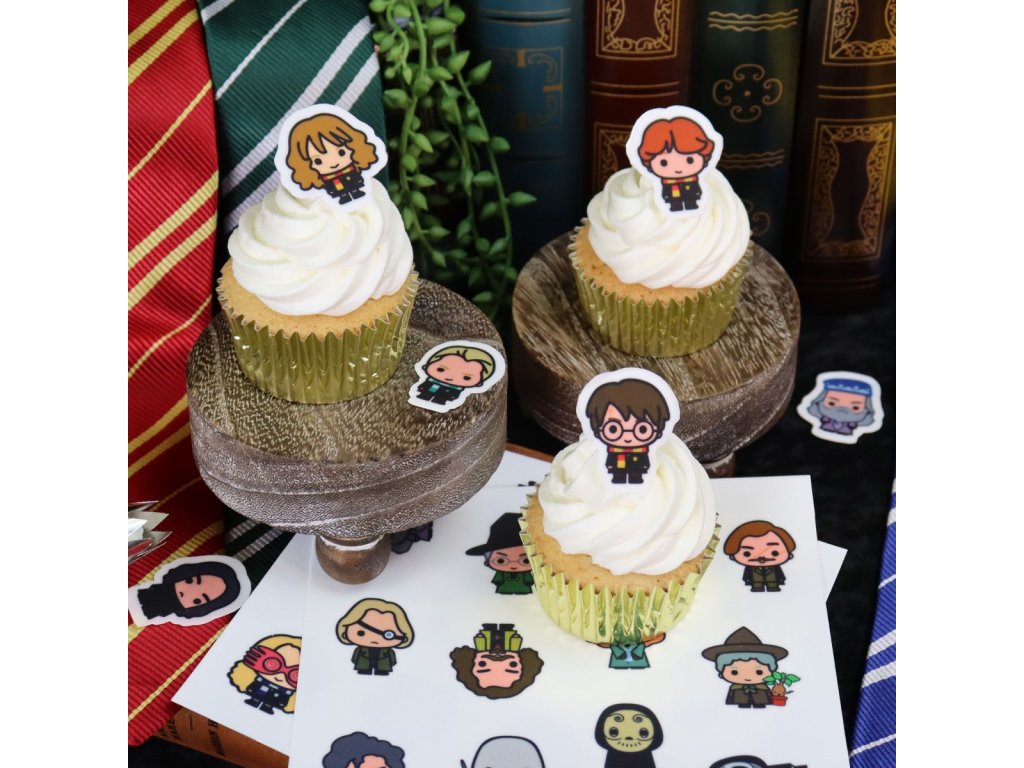 Jedlé ozdoby, které jsou vyrobené z cukru. Balení obsahuje dva listy s 24 postavičkami ze série Harry Potter, což ocení každý správný fanoušek. Ozdobit těmito ozdobami můžete například cupcaky, dorty nebo sušenky.