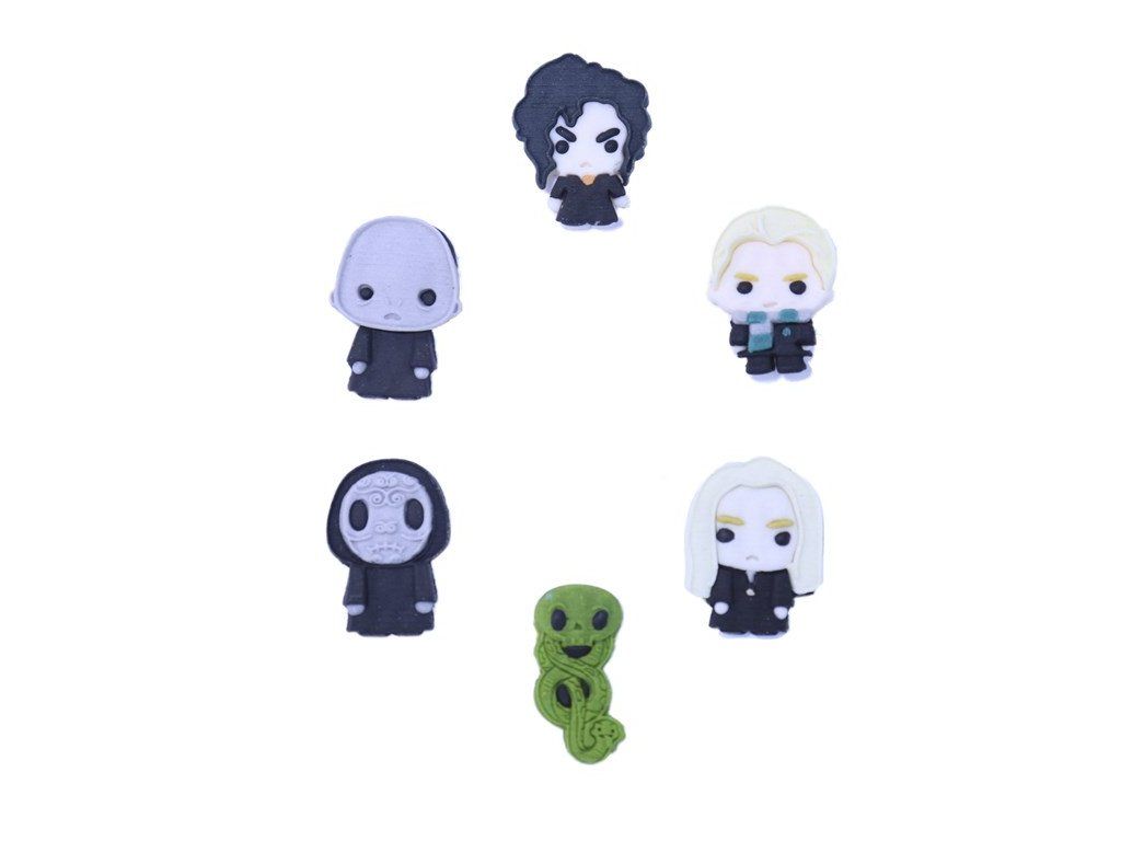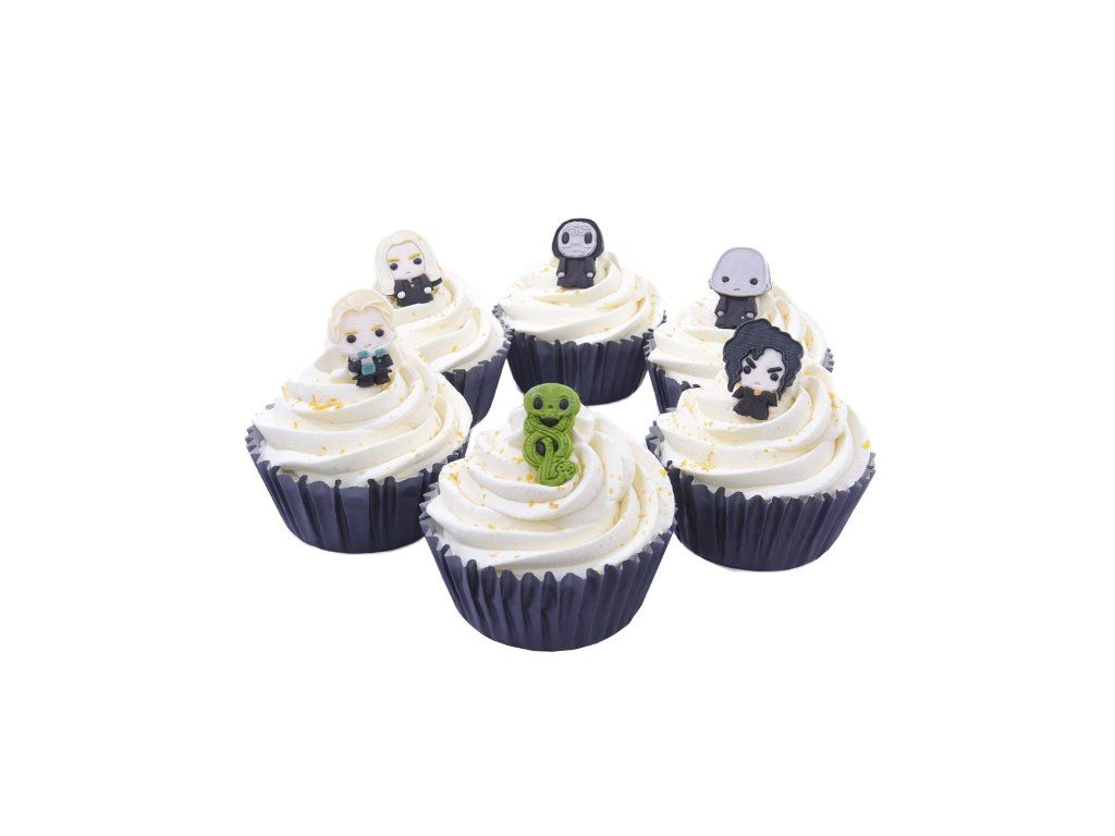 Dodejte svým koláčům nádech kouzelnictví s těmito jedlými ozdobami s motivy Voldemorta, Bellatrix, Draca, Luciouse, Smrtijeda a Znamení zla. Sada obsahuje 6 cukrových ozdob vyrobených z jedlé gumpasty. Rozměry přibližně 25 x 30 mm. Vysoce kvalitní, unikátní ručně vyráběné cukrové ozdoby. Perfektní sada pro kreativní rodinnou zábavu s malými fanoušky Harryho Pottera. Snadné použití, jednoduše nalepte přímo na muffiny, dorty nebo jakoukoli sladkou pochoutku dle vašeho výběru! Složení: moučkový cukr, voda, glukóza, zahušťovadla (E466, E406), barviva (E172, E162, E133, E160c, E100), barvivo [rostlinné oleje (olivový, kokosový, řepkový a palmový), barvivo (E161b), antioxidant (E307, E304)], zvlhčovadlo (E422), sůl, aroma, palmový tuk, potravinářská barviva (koncentrát spiruliny, koncentrát světlice barvířské).Doplňkové parametry