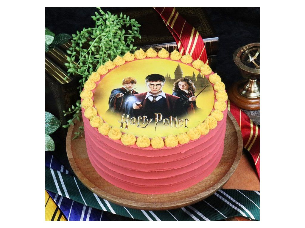 Dodejte svým sladkostem nádech magie s touto velkou jedlou ozdobou s hlavními postavami Harry Potter. Cukrový list s detailním motivem je již předřezaný, takže zdobení zvládnete během vteřiny – stačí ho položit na hotový dort. Složení: škrob, maltodextrin, cukr (15 %), zvlhčovadlo (E422), dextróza, voda, rostlinný olej (kokosový), zahušťovadla (E460i, E466, E414), emulgátory (E471, E492, E435), protispékavá látka (E341iii), aroma, regulátor kyselosti (E330), konzervant (E202), barviva (E102, E110, E122, E133, E151).Doplňkové parametry