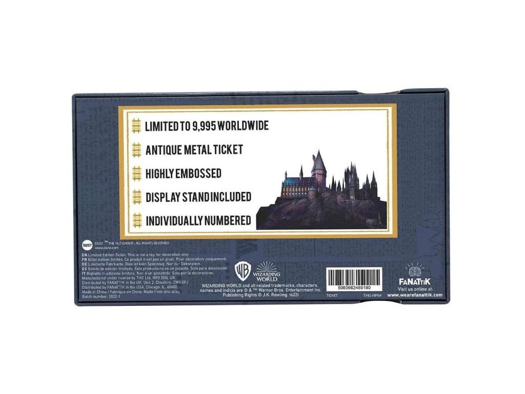 Oficiálně licencovaný sběratelský kousek Harryho Pottera, který vyšel v celosvětové limitované edici, a to pouze v 9995 kusech. Jízdenka disponuje krásným detailním designem a každá obsahuje číslo v sérii. Nechybí ani stojan, na kterém je možné si jízdenku vystavit.