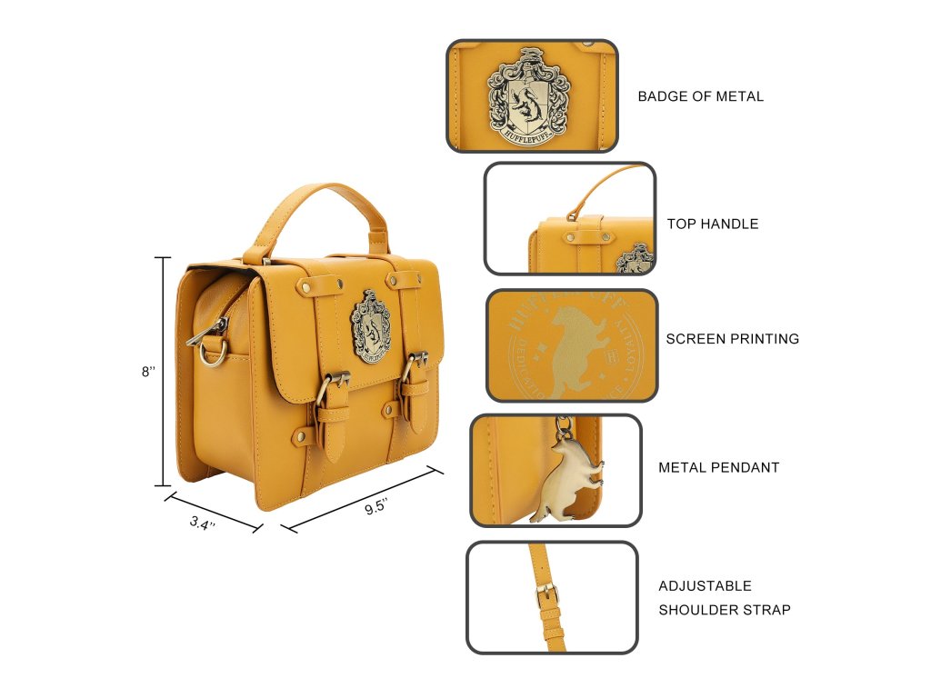 Tato kouzelná kabelka typu aktovka je nezbytností pro každého studenta Mrzimoru. Díky okouzlujícím detailům a prostornému designu v ní najdete vše, co potřebujete k dobytí kouzelnického světa (nebo jen ke zvládnutí každodenních úkolů). Noste ji hrdě a ukažte svou kolejní hrdost! Klasický aktovkový design plný kouzla – a přívěsků! Navíc je pohodlná na nošení díky odnímatelnému popruhu a hornímu držadlu.Doplňkové parametry