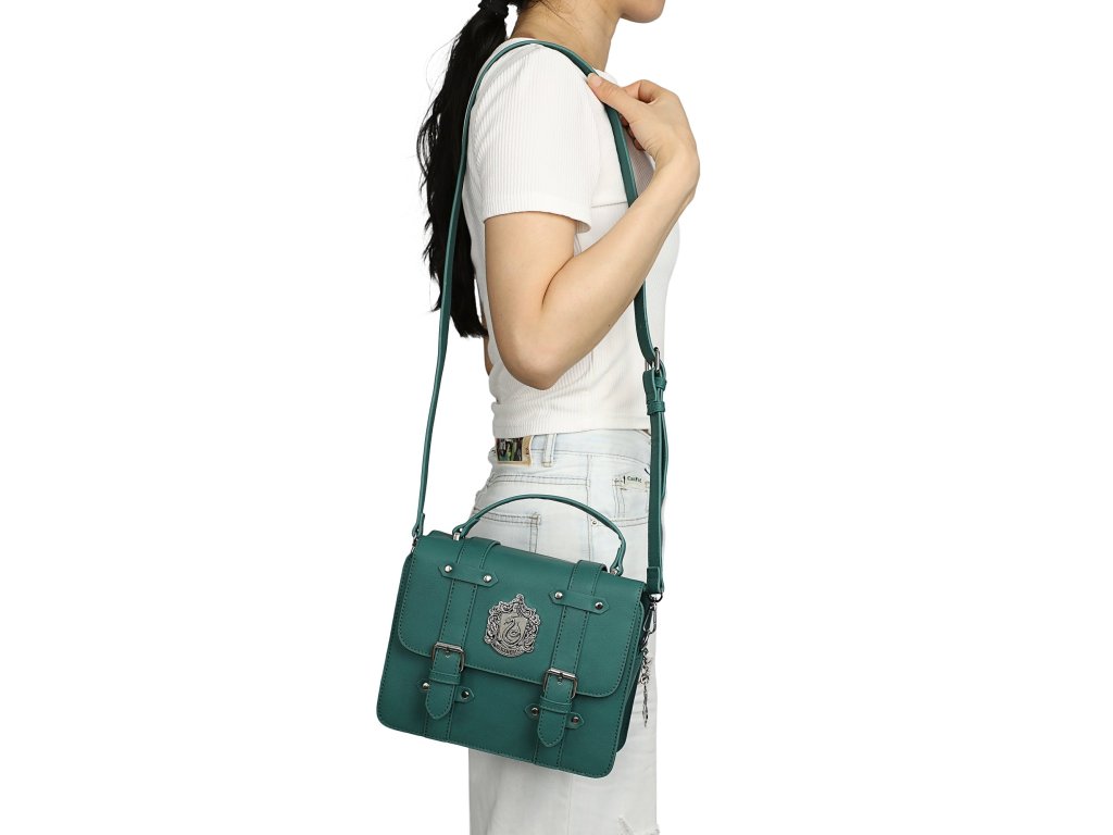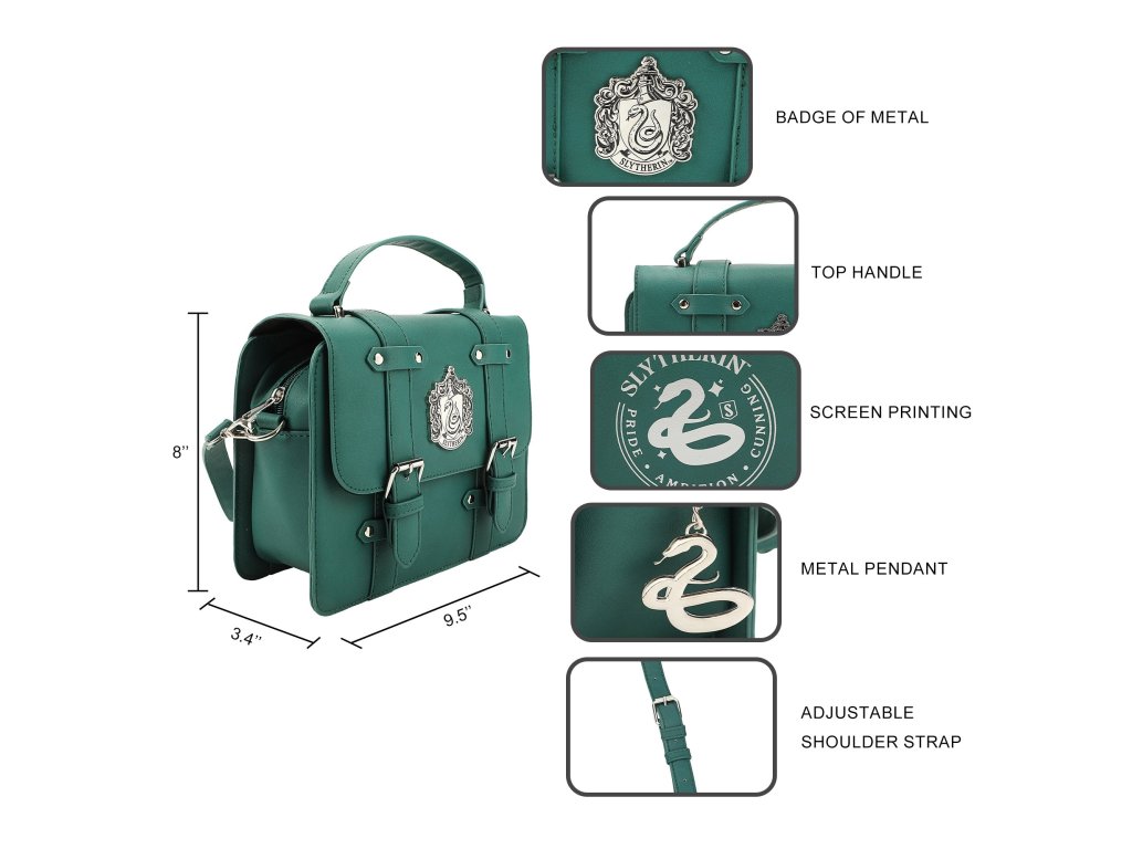 Tato kouzelná kabelka typu aktovka je nezbytností pro každého studenta Zmijozelu. Díky okouzlujícím detailům a prostornému designu v ní najdete vše, co potřebujete k dobytí kouzelnického světa (nebo jen ke zvládnutí každodenních úkolů). Noste ji hrdě a ukažte svou kolejní hrdost! Klasický aktovkový design plný kouzla – a přívěsků! Navíc je pohodlná na nošení díky odnímatelnému popruhu a hornímu držadlu.Doplňkové parametry