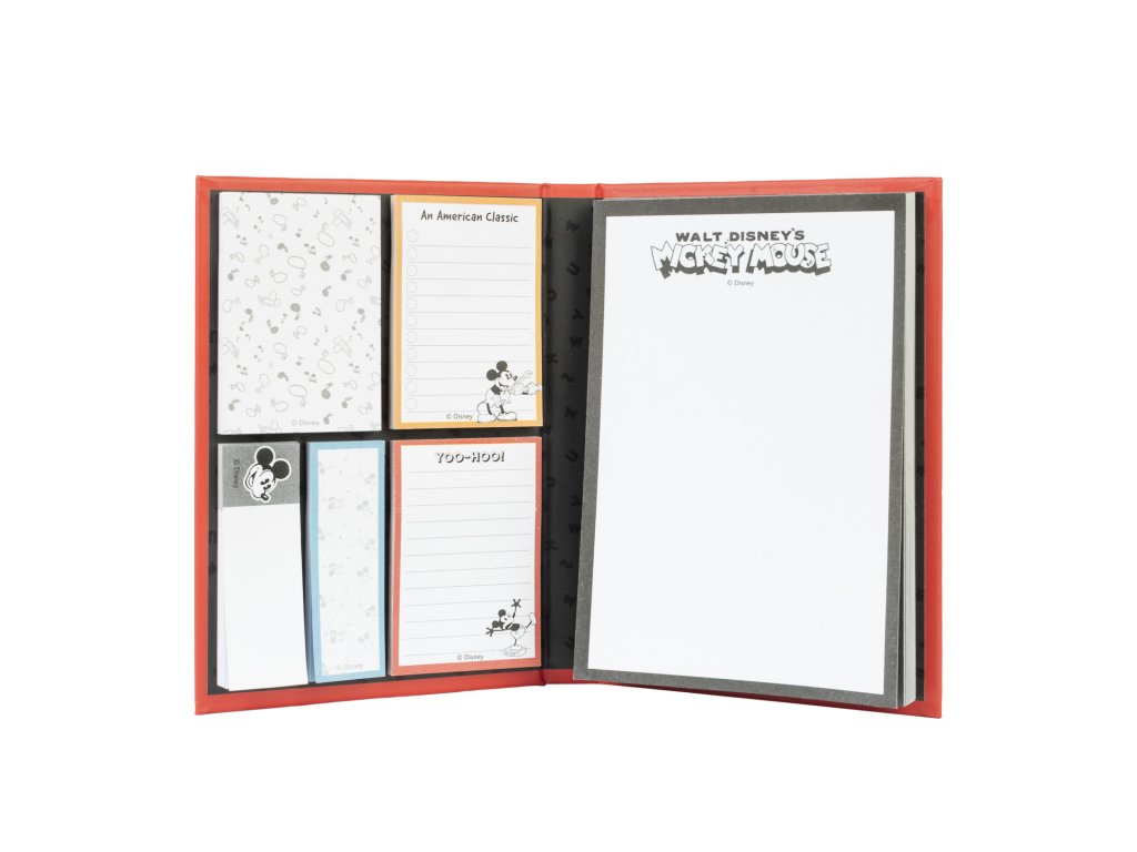 Samolepicí blok Mickey Mouse z kolekce Disney Mickey Classic. Rozměry 11 x 15,5 cm, formát A6. Obsahuje 1 blok a 5 druhů samolepicích papírků.Doplňkové parametry