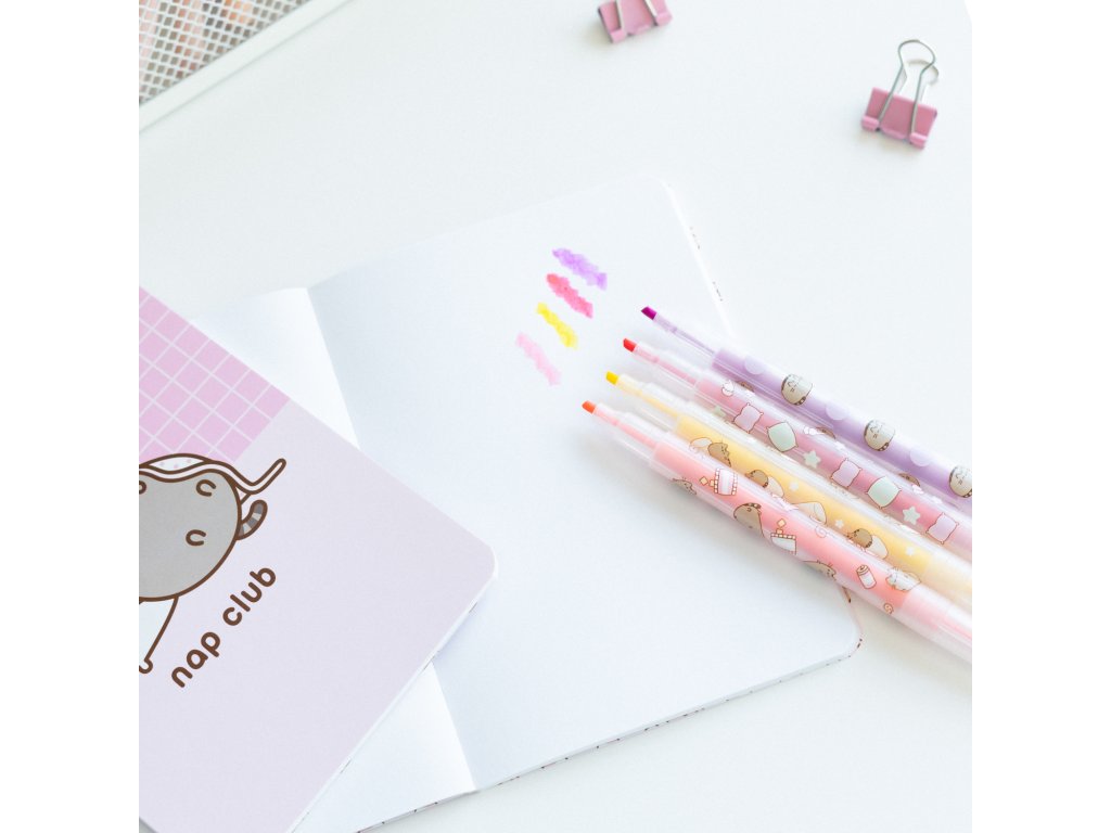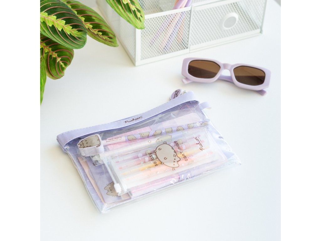 Obsahuje 3 sešity A6, 1 tužku s personalizovanou gumou, 2 kancelářské sponky s gumou, 1 balíček samolepících papírků, 1 pouzdro se 4 zvýrazňovači, 2 listy samolepek a 1 personalizované pero s gumou. Vše uvnitř PU a PVC sáčku se zipem.Doplňkové parametry