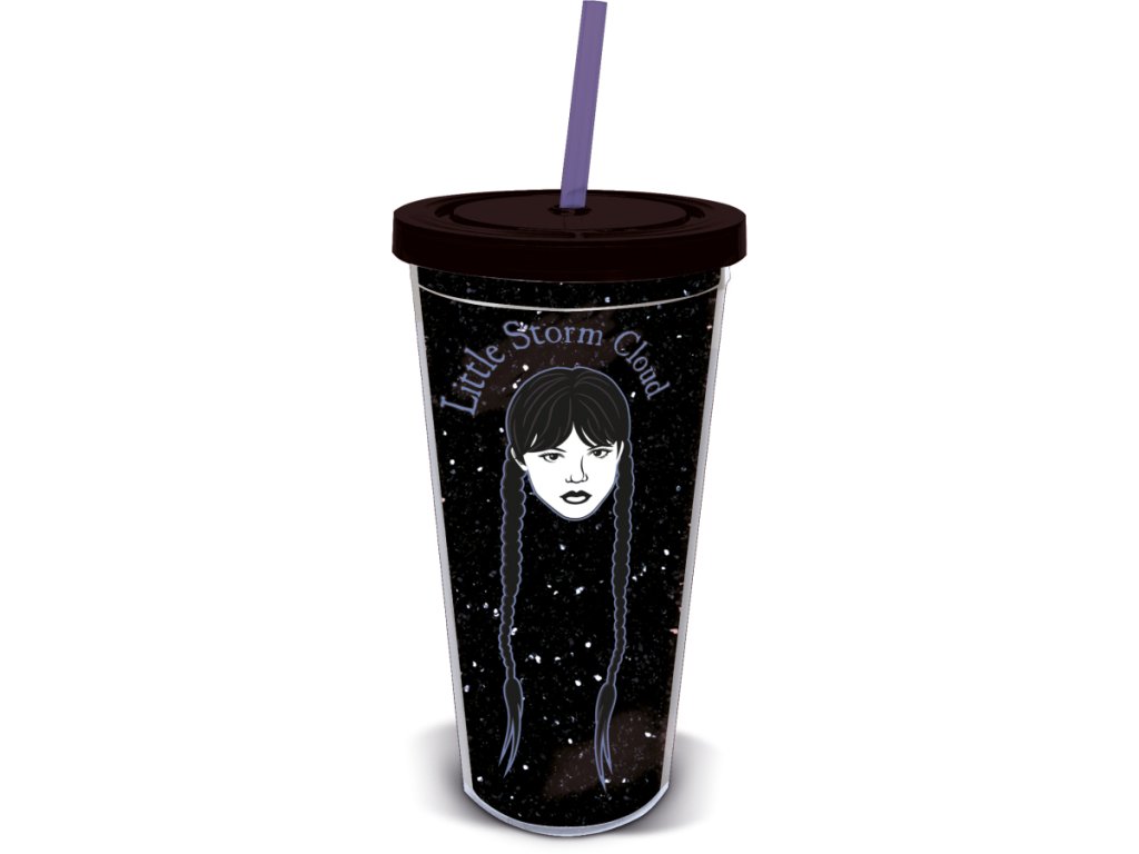 Plastový hrnek s motivem Wednesday. Součástí hrnku je plastové šroubovatelné víčko a brčko. Hrnek není vhodný do myčky nádobí a mikrovlnné trouby. Nepoužívejte na horké nápoje.