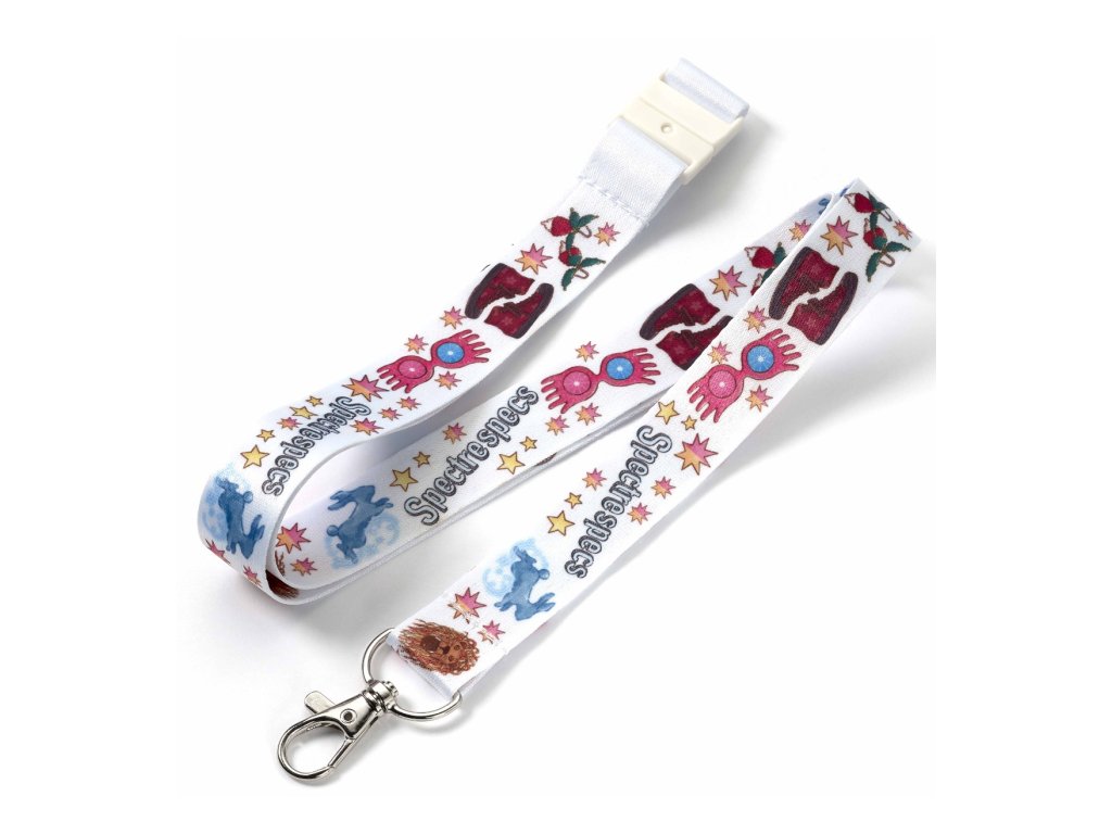 Vyrobeno z polyesterového popruhu s kovovým klipem a plastovým bezpečnostním zapínáním, které se snadno rozpojí.
