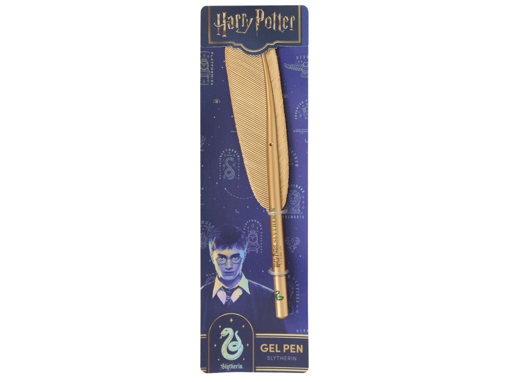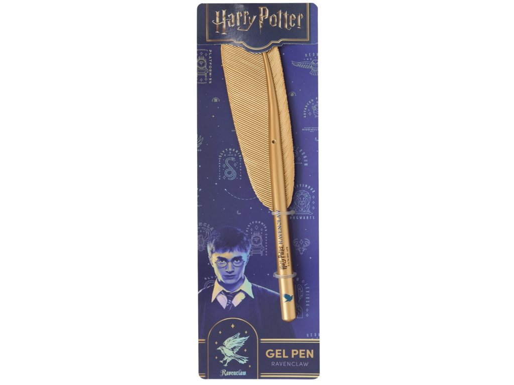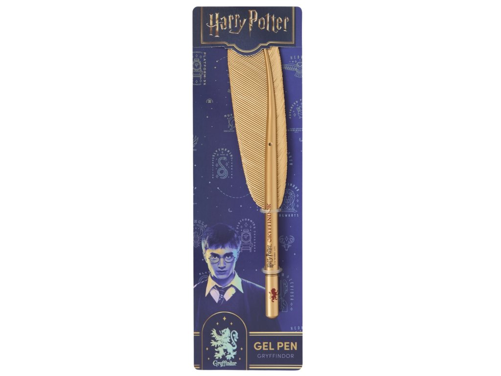 Praktická propiska ve stylu magického brku s nápisem příslušné bradavické koleje ve zlaté barvě.