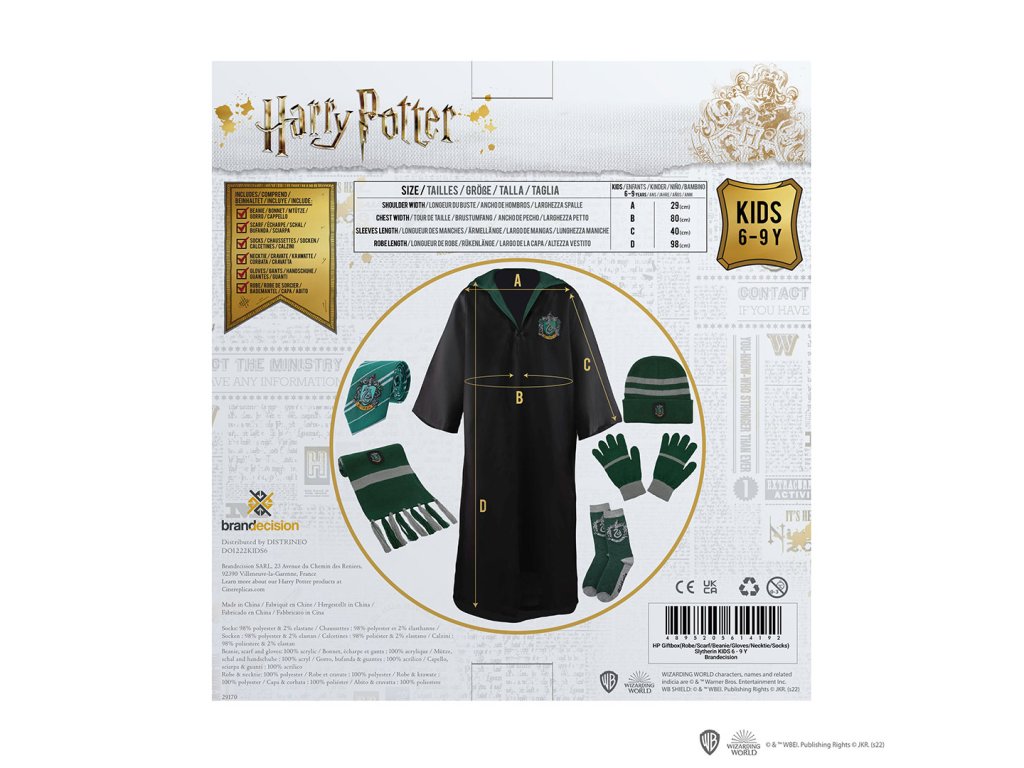 Snili jste někdy o tom, že se připojíte ke zmijozelské koleji po boku Draca Malfoye? Proměňte se v bradavického studenta s tímto balíčkem zmijozelské uniformy. Sada obsahuje: repliku pláště, kravatu, šálu, čepici, rukavice a ponožky. Vhodné jako originální dárek - zabaleno v papírové dárkové krabičce (32 x 30 x 4,8 cm).