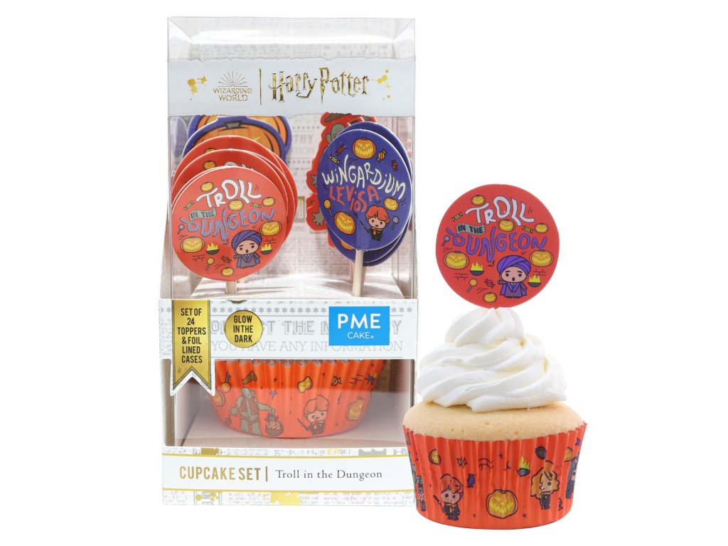 Obsahuje 24 oboustranných papírových topperů na dřevěných tyčkách a 24 košíčků na muffiny. To vše inspirováno scénou z prvního dílu Harryho Pottera, v němž byl obrovský troll vpuštěn do bradavického hradu. Košíčky o rozměrech 30 x 52 mm jsou potaženy kovovou fólií, aby neprosakovala mastnota.
