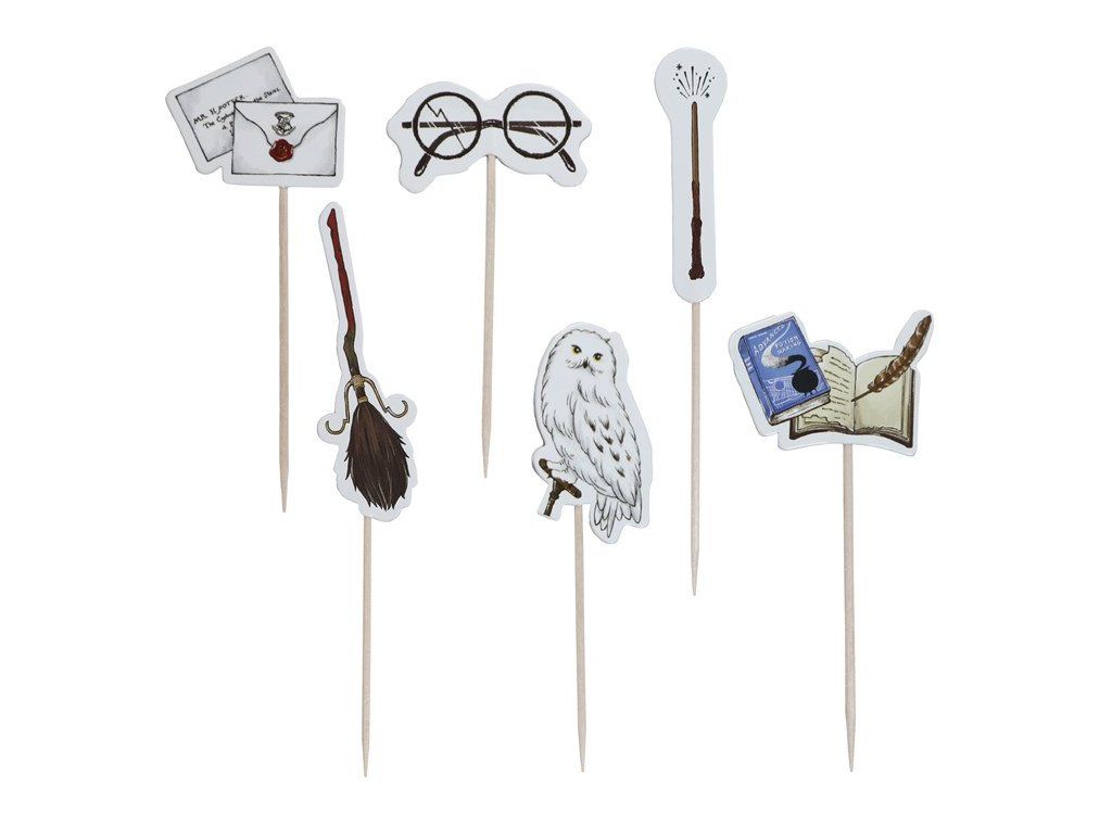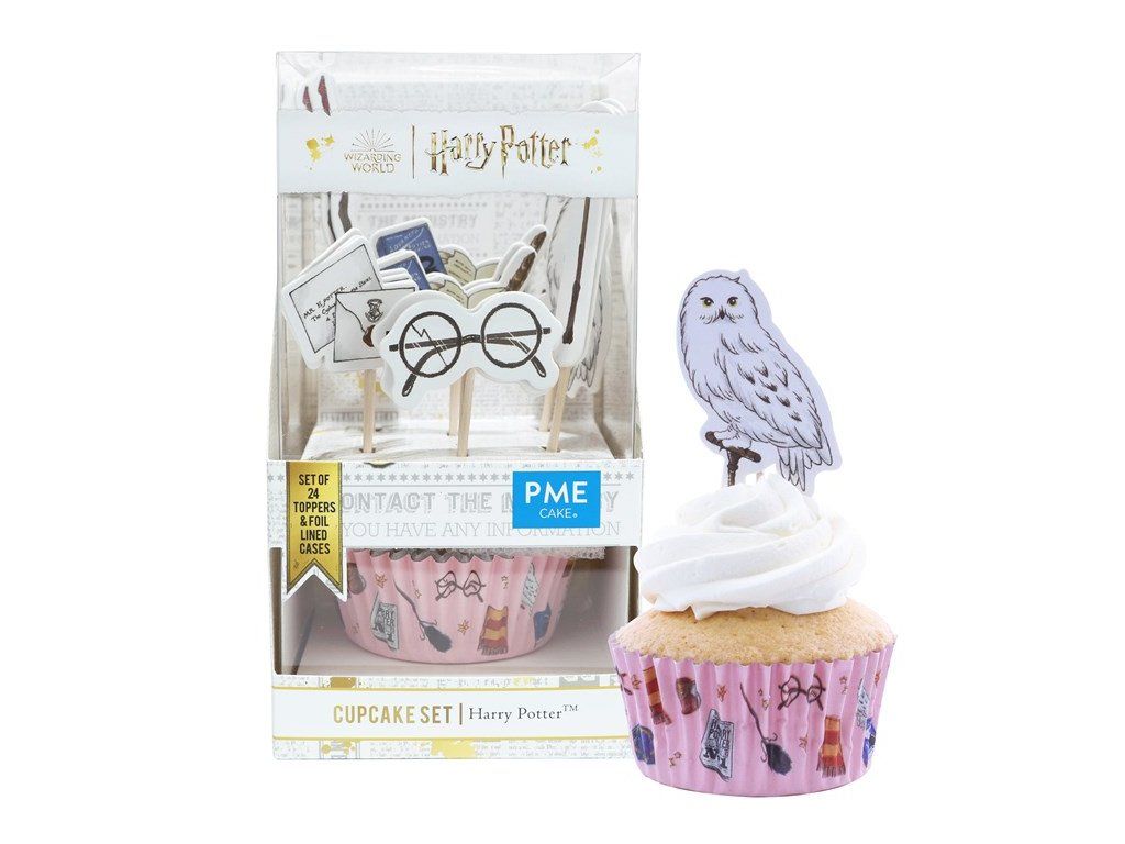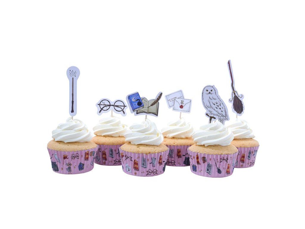 Udělejte si radost s pečením s touto sadou košíčků na muffiny a ozdobami s motivem Harryho Pottera. Obsahuje 24 oboustranných papírových ozdob na dřevěných tyčkách a 24 odpovídajících košíčků na muffiny. Tyto vysoce kvalitní košíčky na muffiny o rozměrech 30 x 52 mm jsou vystlané fólií, aby se zabránilo prosakování tuku. Ideální pro kouzelníky z Bradavic, kteří slaví narozeniny, nebo pro mudly, kteří pořádají večírky s potterovskou tematikou!Doplňkové parametry