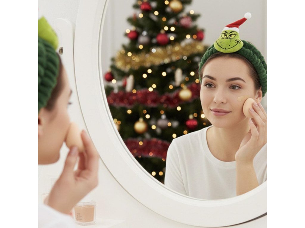 Lehká a praktická kosmetická čelenka na líčení s motivem Grinche, ideální pro péči o pleť nebo domácí beauty rituály. Jemný materiál pohodlně drží vlasy zpátky a umožňuje dětem i dospělým soustředit se na aplikaci masky či kosmetiky.