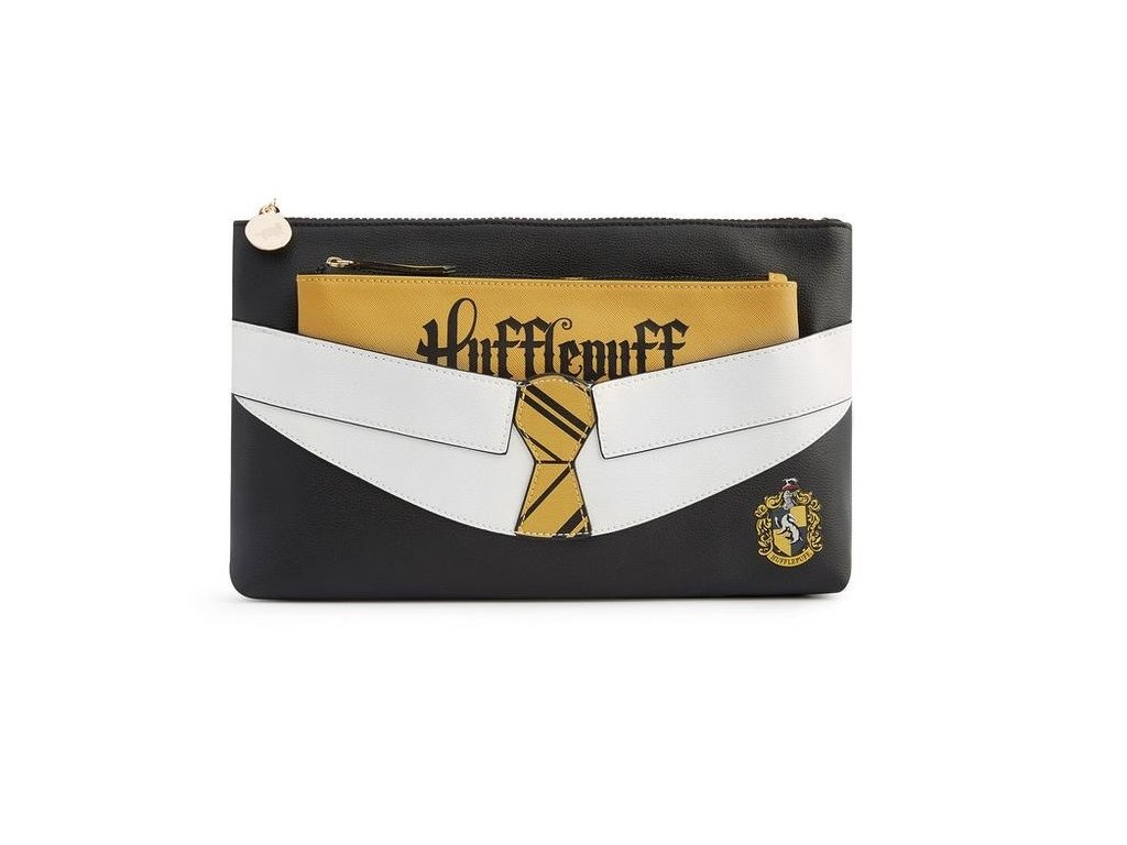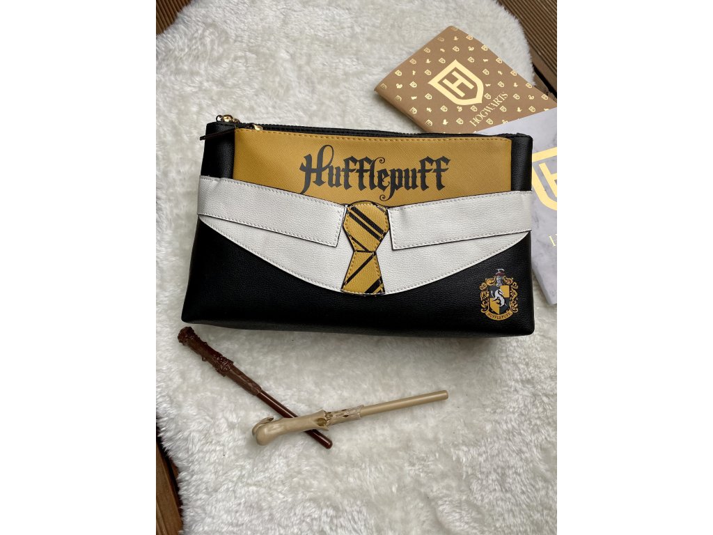 Kosmetická taška 2v1 - velká černá taštička a uvnitř menší barevná s nápisem Hufflepuff.
