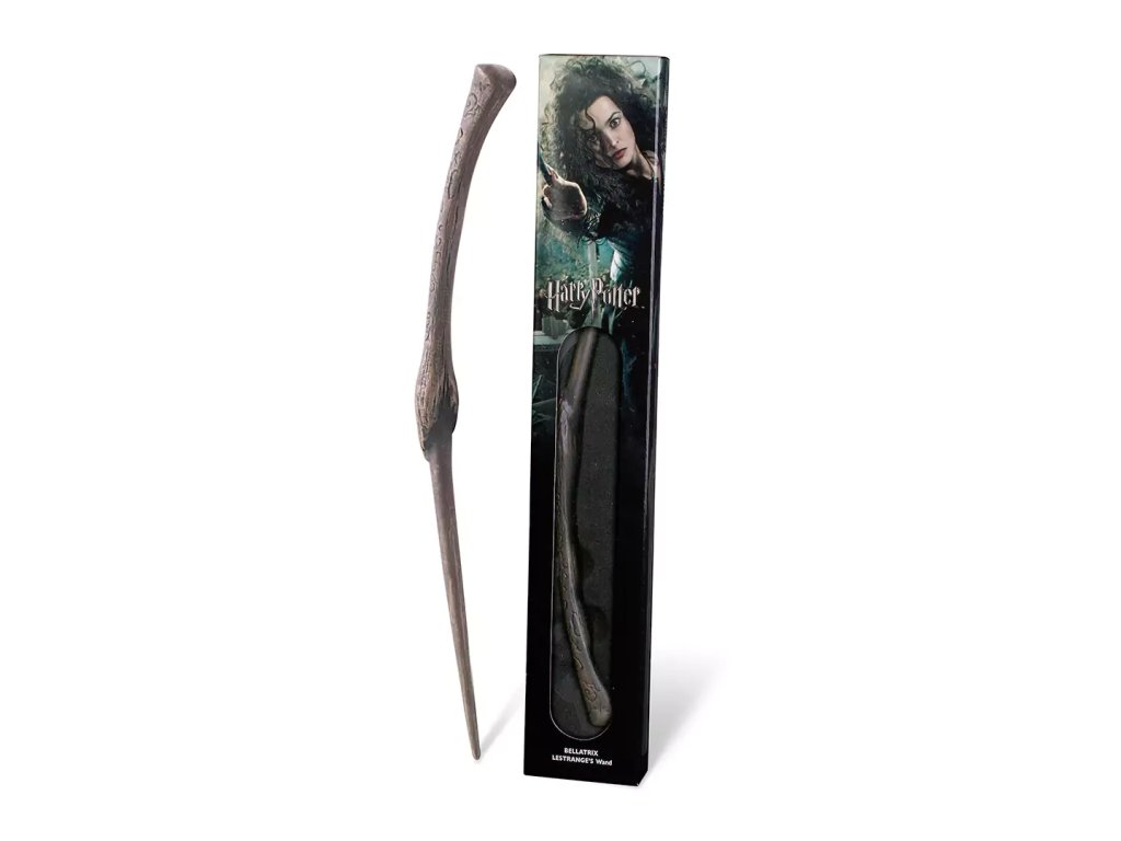 Kouzelnická hůlka z filmu Harry Potter - hůlka Bellatrix Lestrangeové. Bellatrix, někdy také označována pouze jako Bella, je zlá, krutá, čistokrevná a šílená čarodějnice, která zbožňuje Voldemorta jako nikoho jiného. Tato Smrtijedka se velice vyžívá v bolesti a utrpení druhých.