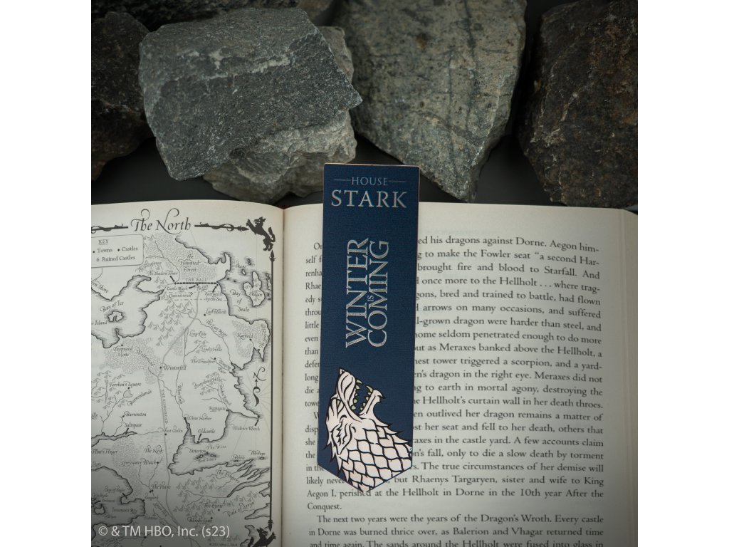 Ponoř se do fascinujícího světa Západozemí a pevně si označ své místo v knize s touto záložkou nesoucí ikonický erb rodu Starků, šedého vlka a slavná slova „Zima přichází“. Tato záložka dokonale vystihuje legendární odkaz rodu Starků. Vnímej sílu literatury a hrdě ukaž svou věrnost království s naší výjimečnou kovovou záložkou.