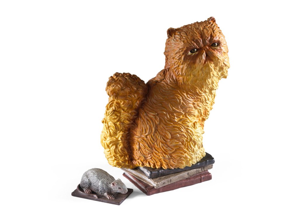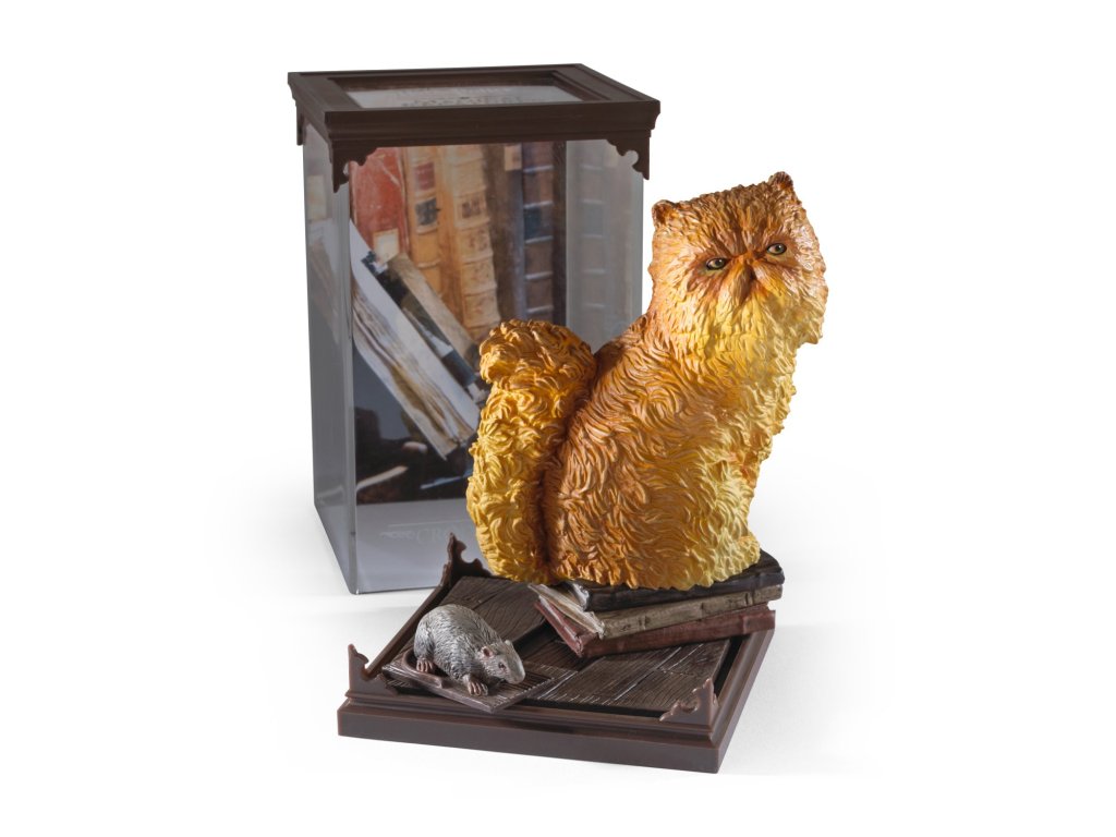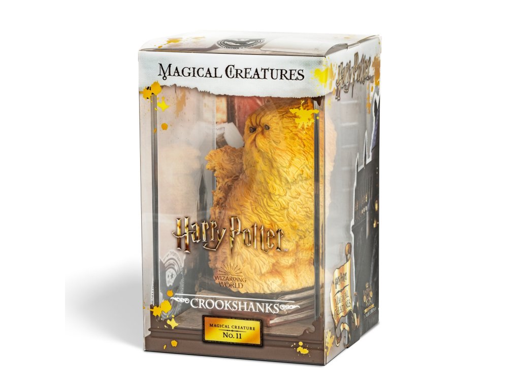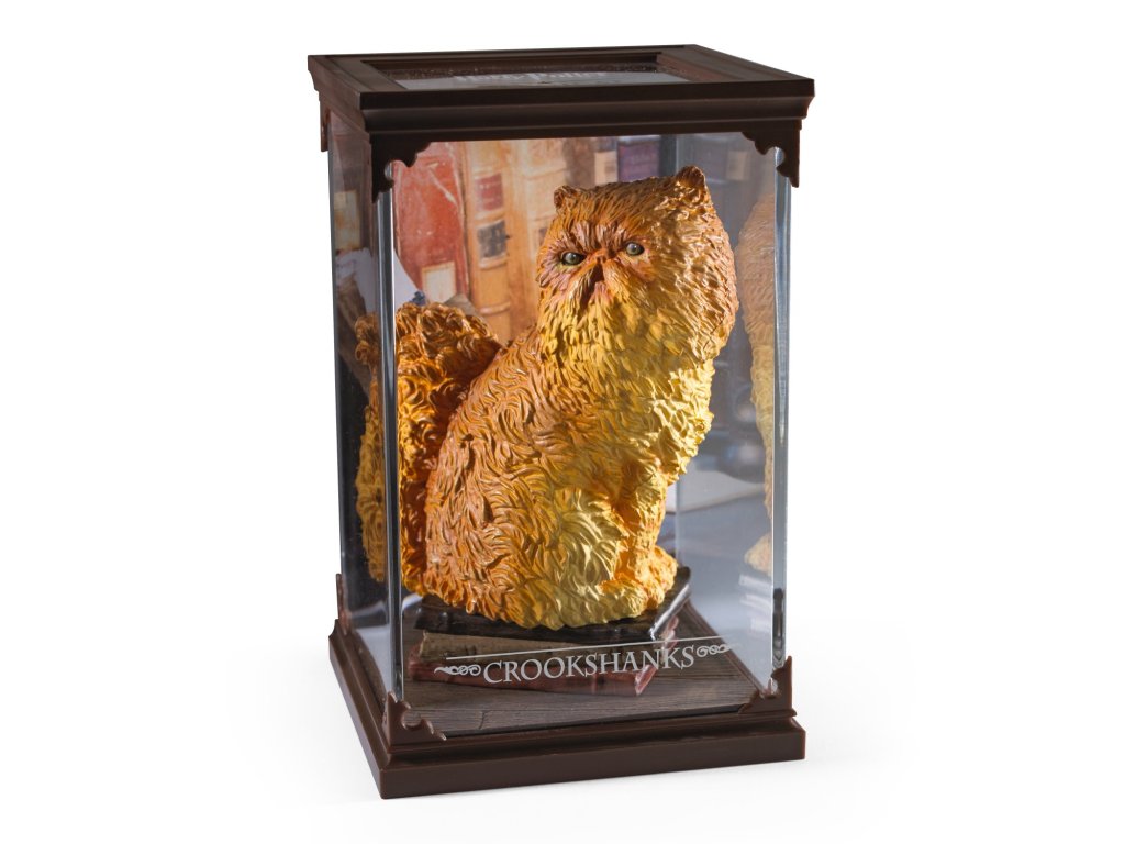 Sběratelská figurka v průhledné vitríně - Křivonožka (Crookshanks). Jde o chlupatou kočku, mazlíčka Hermiony Grangerové.
